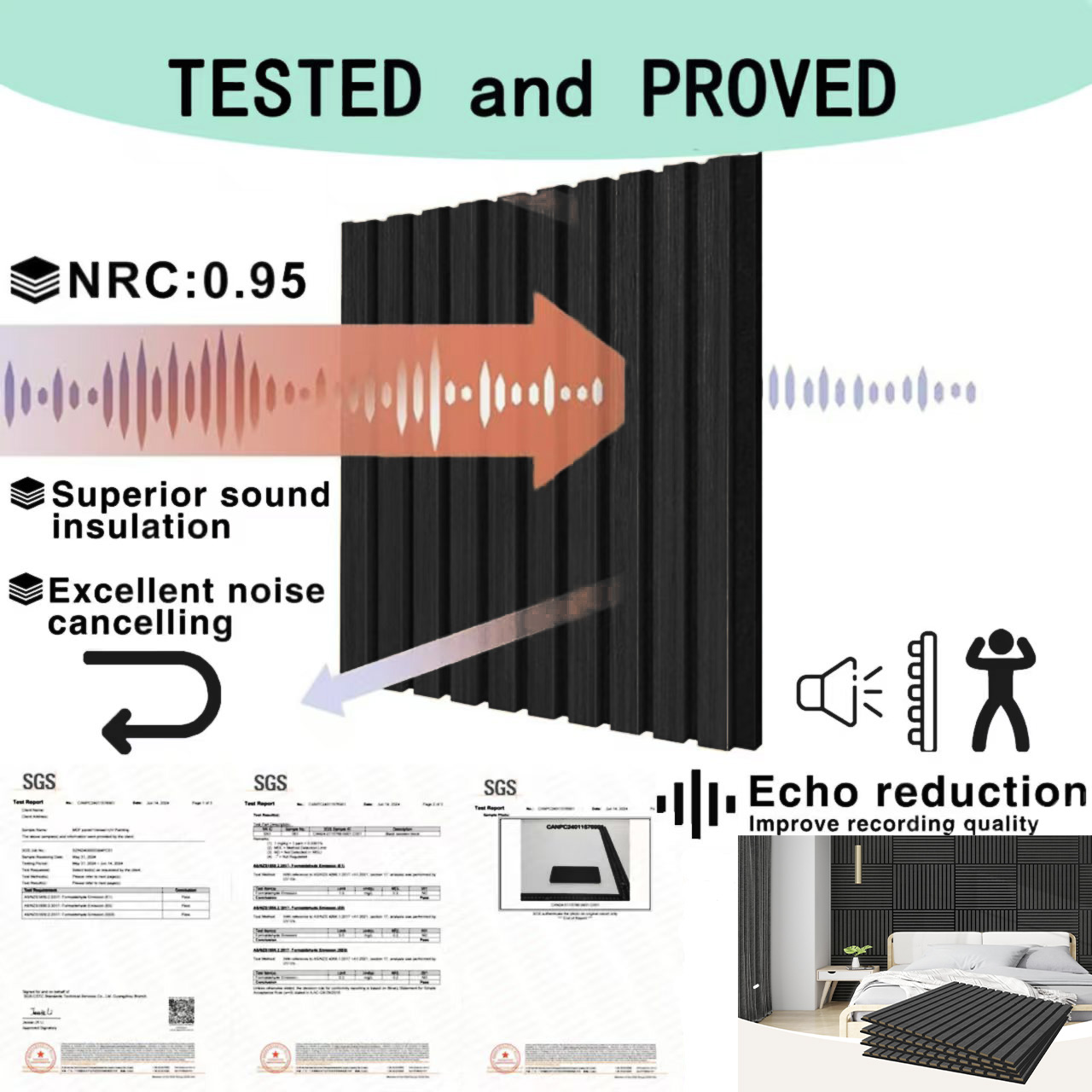 - Eco-Friendly: Constructed from environmentally conscious materials, including MDF and polyester fiber, offering a sustainable solution for soundproofing and decoration.