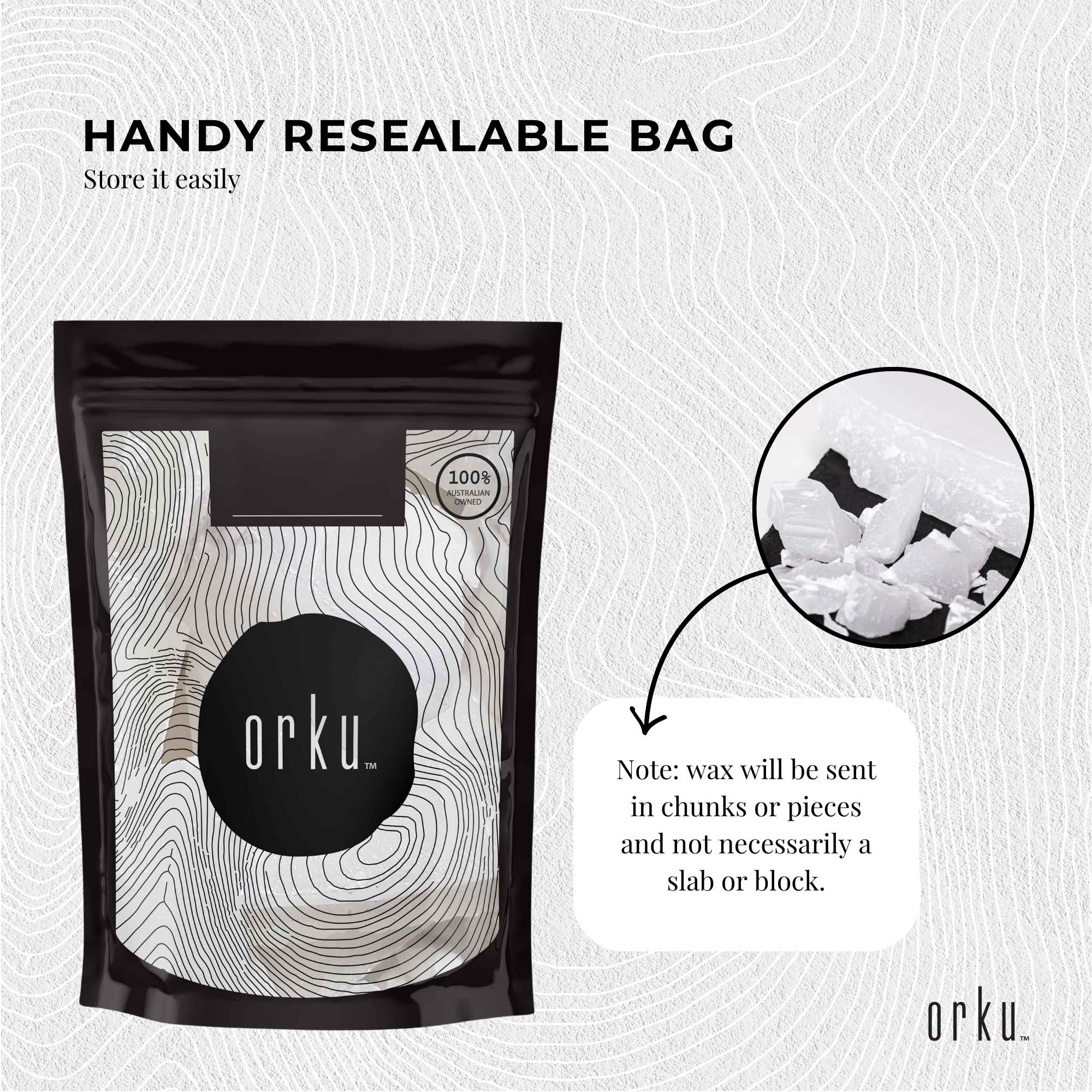 400g Paraffin Wax in Resealable Bag.