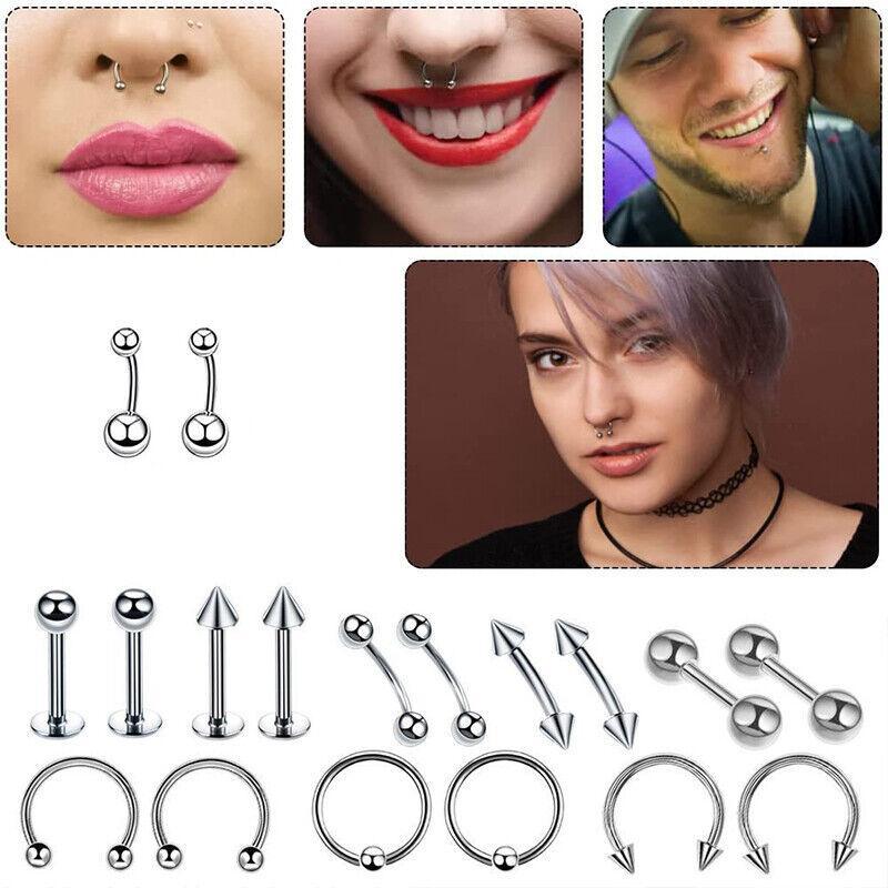 42Pcs Body Piercing Kit Needle Nipple Belly Tongue Eyebrow Nose Lip Ring 14G/16G