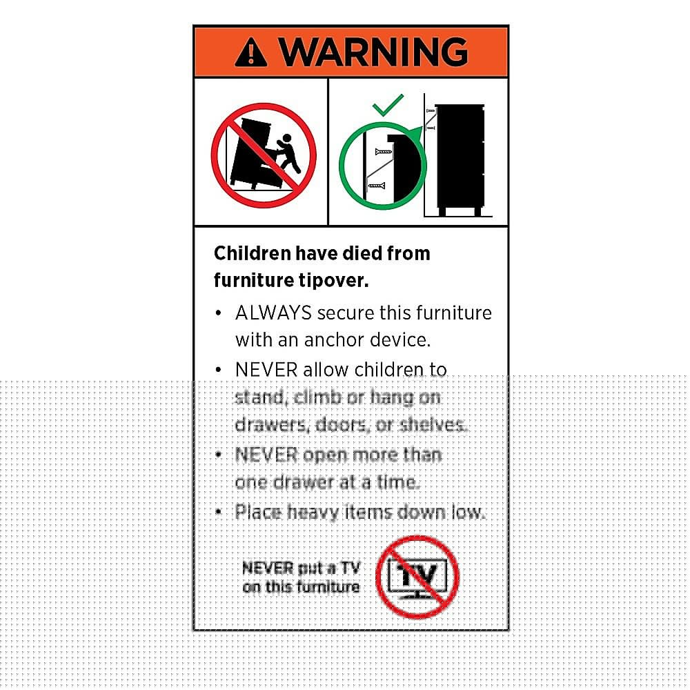 - NEVER allow children to stand, climb, or hang on drawers, doors, or shelves.