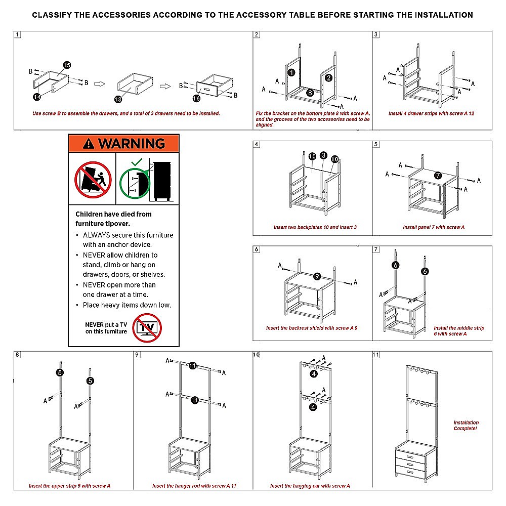 ***WARNING! Children have died from furniture tipover.***