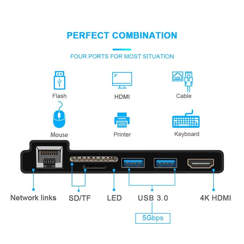 • 1 x 4K Hdmi Adapter With Rj45 Usb 3.0 And Sd / Tf Reader