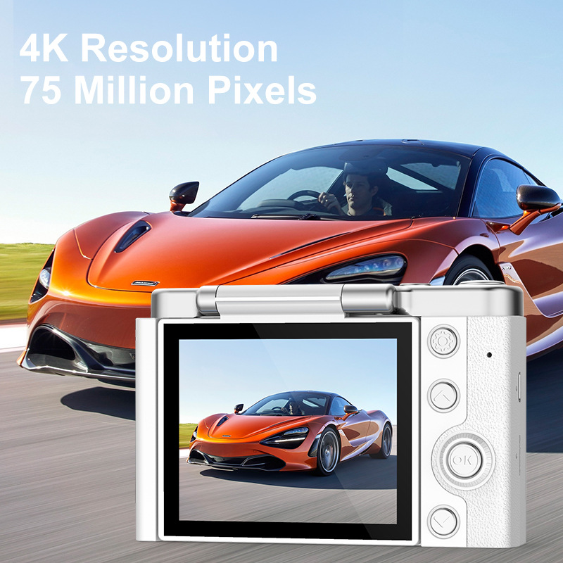 4K Ultra HD Digital Camera – 75MP, 2.8-inch Rotatable Screen, Auto Focus & Built-in Flash(white)