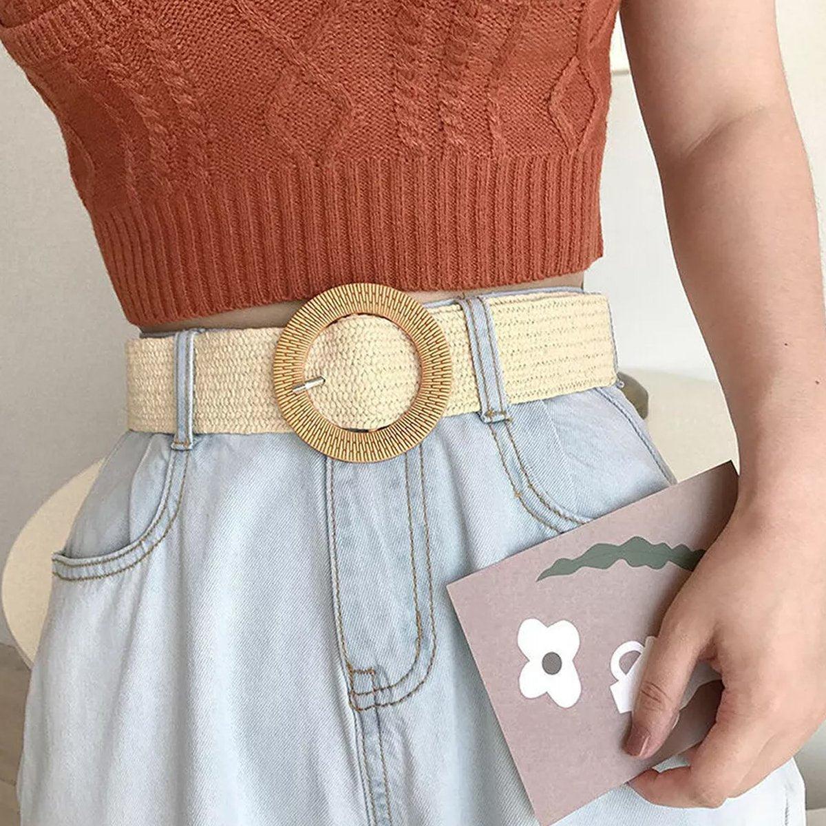 Enhance your wardrobe with this fashionable set of 4 woven belts, designed from a sturdy cotton-linen blend with a unique PP grass texture for a natural and chic appeal. Each belt features a different buckle style—both round and square—adding versatility and flair to your outfits. Perfect for accentuating your waist with dresses, long shirts, or casual attire, these belts provide a comfortable and secure fit. Ideal for daily wear or special occasions, this set offers style and functionality in one.
