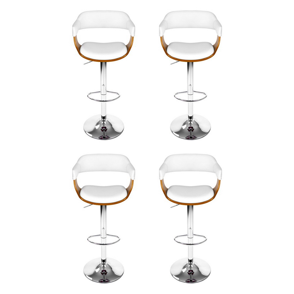 4x Artiss Bar Stools Gas Lift Leather with Armrest White