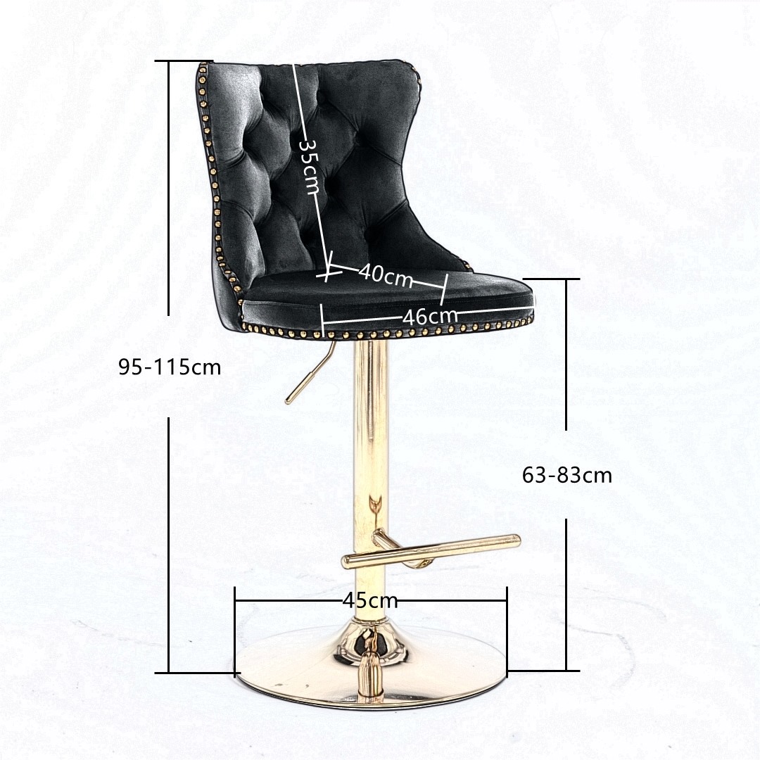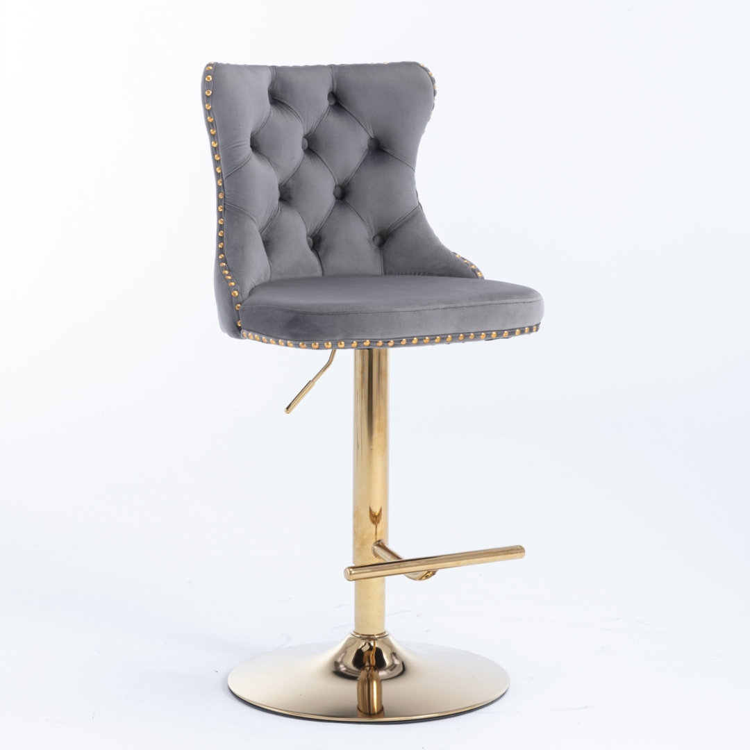 4x Height Adjustable Swivel Bar Stool Velvet Studs Barstool with Footrest and Golden Base- Grey