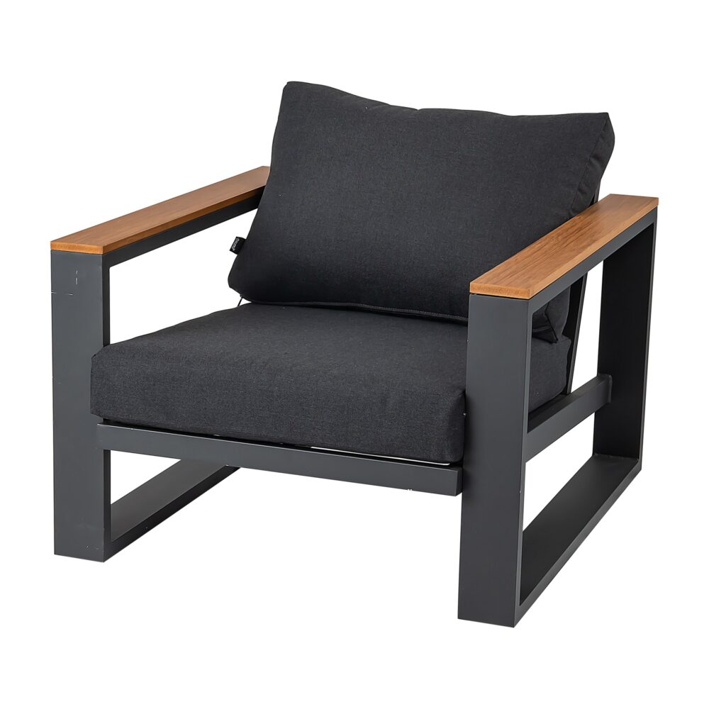 Create a stylish alfresco area with this contemporary designed lounge setting. Constructed from a powder coated aluminium with teak timber trimming