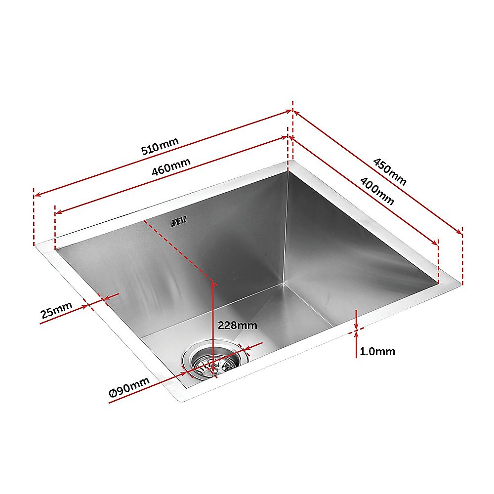 - Single sink measuring 510 x 450 x 228mm(from strainer hole) (L x W x D)