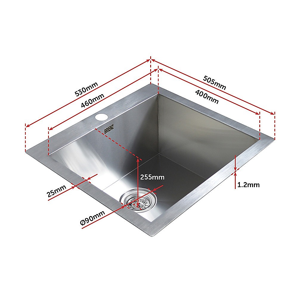 530x505mm Handmade Stainless Steel Topmount Kitchen Laundry Sink with Waste