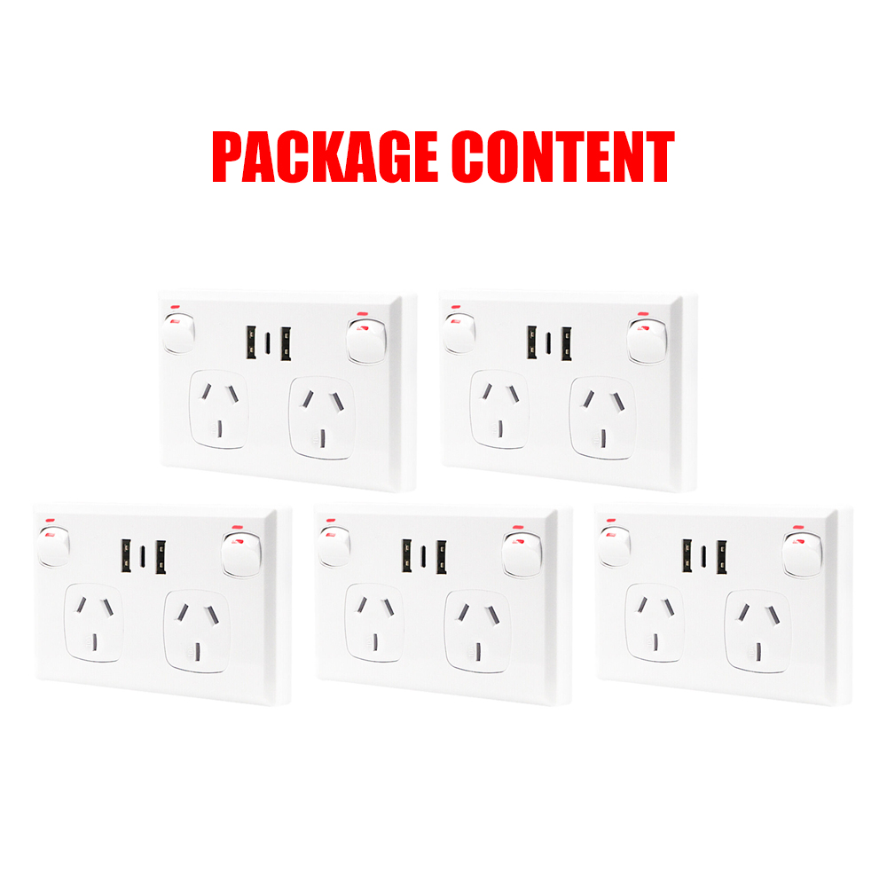 5PCS Double Power Point Dual USB+Type-C GPO Fast Charge 3.6 amp Wall Outlet