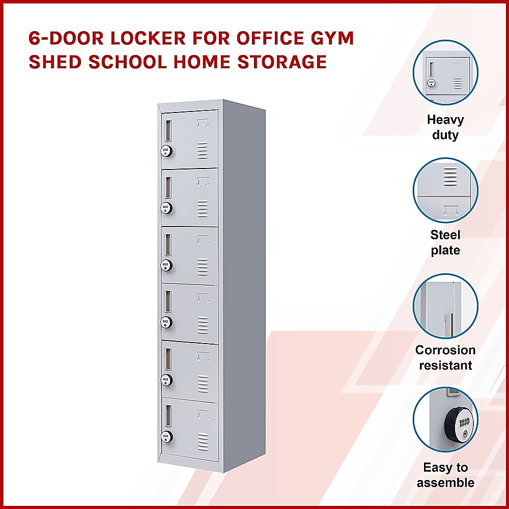 6-Door Locker for Office Gym Shed School Home Storage