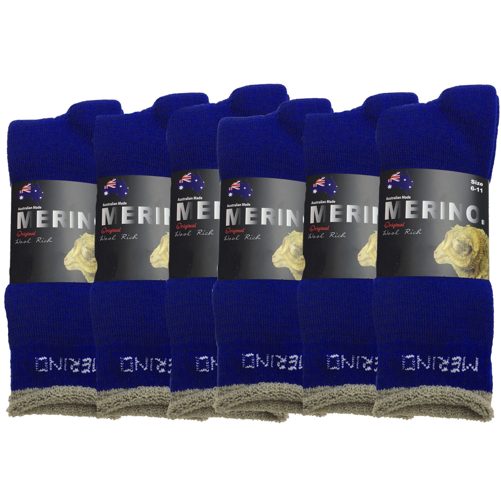6 Pairs MERINO WOOL SOCKS Mens Heavy Duty Premium Thick Work Socks Cushion BULK – Blue – 6-11