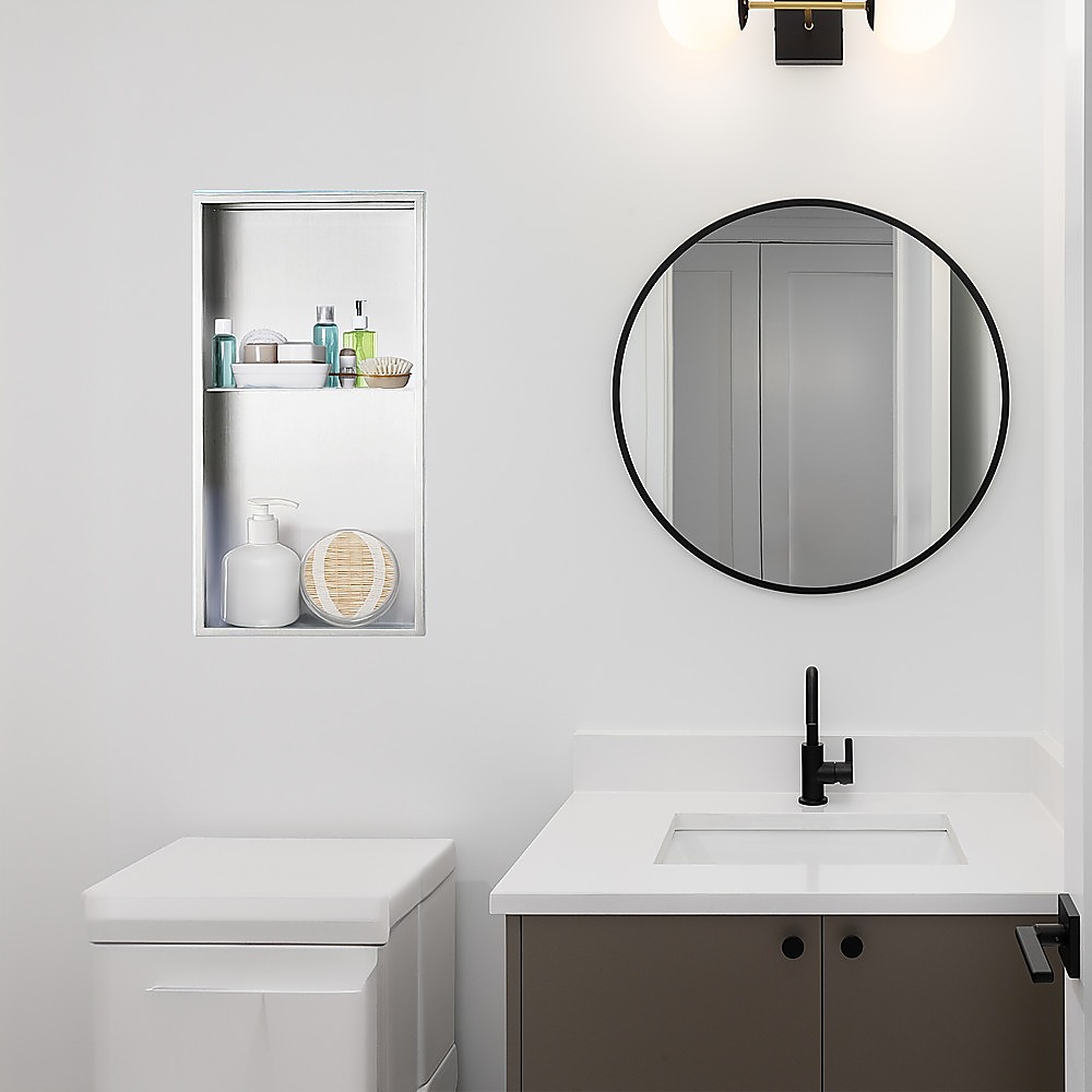 Transform your space into a modern oasis with this elegant and functional niche. Featuring two shelves, it provides the perfect storage solution for all your bathroom essentials and small shower products. Enjoy the seamless blend of stylish design and practical convenience.