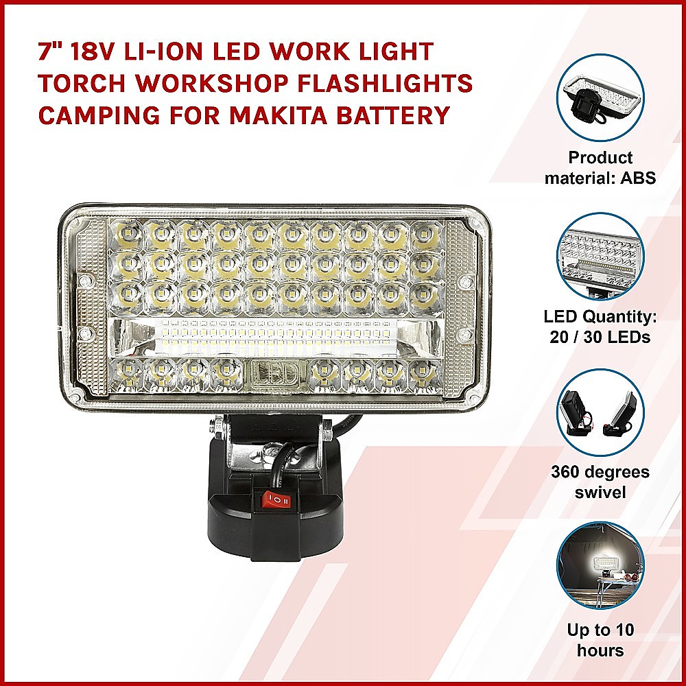 7″ 18V Li-ion LED Work Light Torch Workshop Flashlights Camping for Makita Battery
