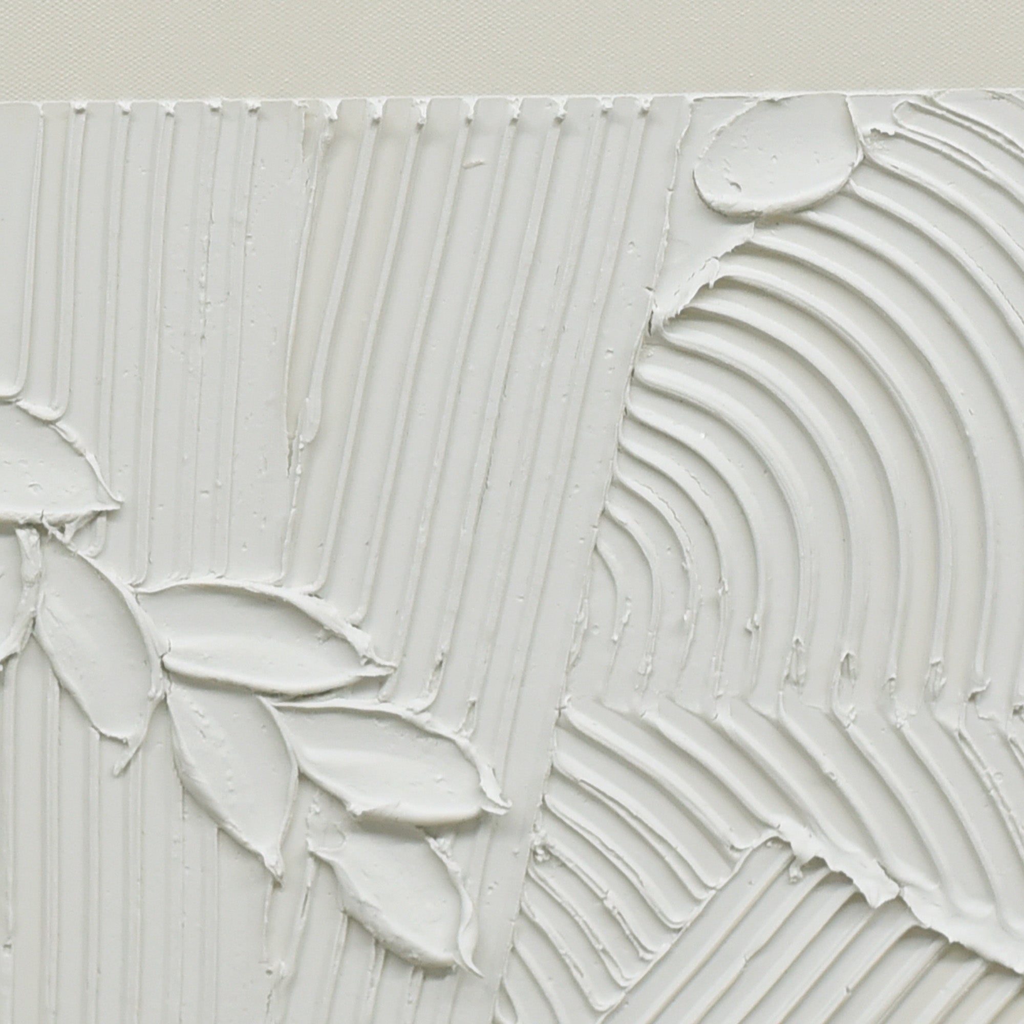 “Plaster Panorama” is a distinctively crafted 70cm x 90cm artwork, embodying the raw beauty of hand-applied textures. At its core, thick strokes and grooves of pristine white plaster dance across the canvas in a symphony of chaotic yet harmonious motion. Each textured element tells a story, revealing the meticulous hand of the artist and the unpredictability of the medium. This captivating array of textures is then beautifully framed by a beige border, offering a stark contrast to the white and adding an air of sophistication. Set within a dark wood frame, “Plaster Panorama” serves as a testament to the beauty of abstract art and the unique allure of plaster on canvas, bringing a tactile dimension to any space it graces.