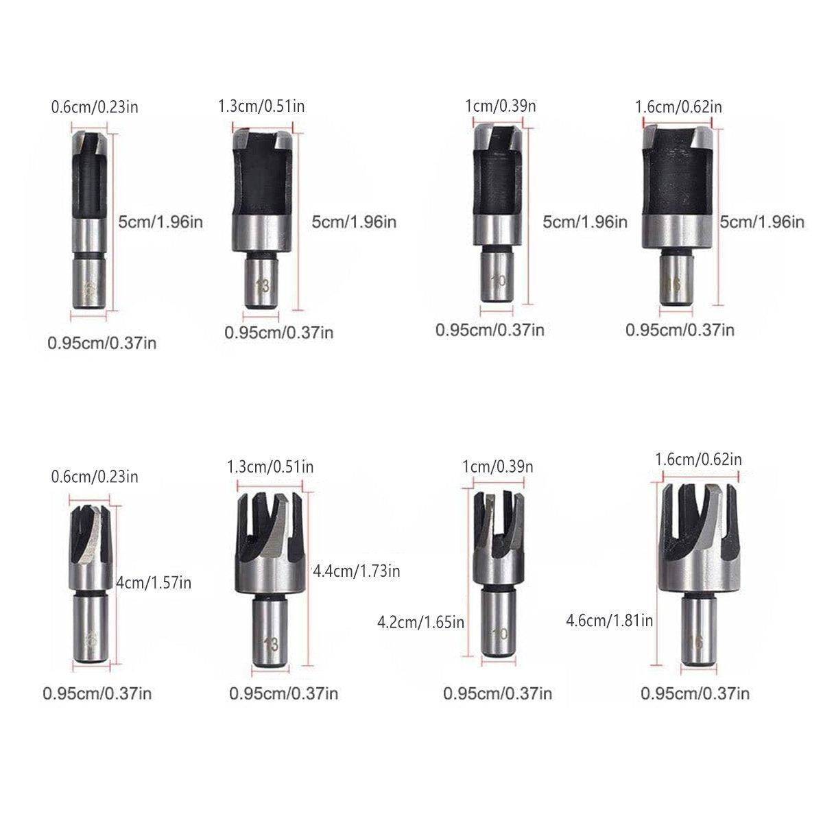8 PCS Wood Plug Hole Cutter Dowel Maker Cutting Tools Shank Drill Bits With Box
