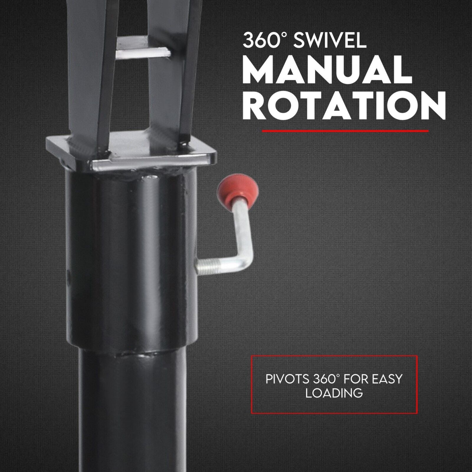 - Swivel crane hoist’s boom extension locks in 3 positions (100KG, 250KG and 500KG)