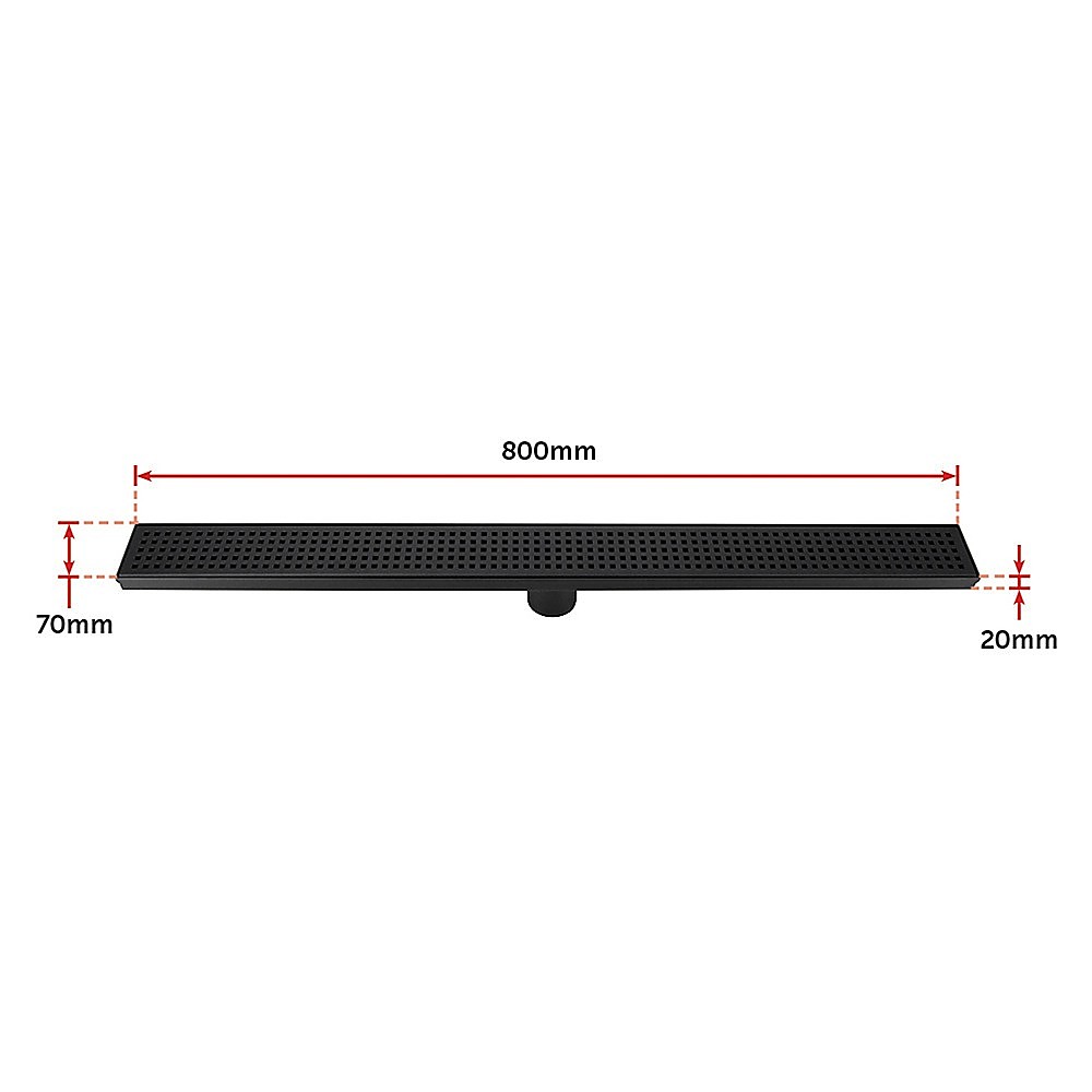 800mm Bathroom Shower Black Grate Drain w/Centre outlet Floor Waste