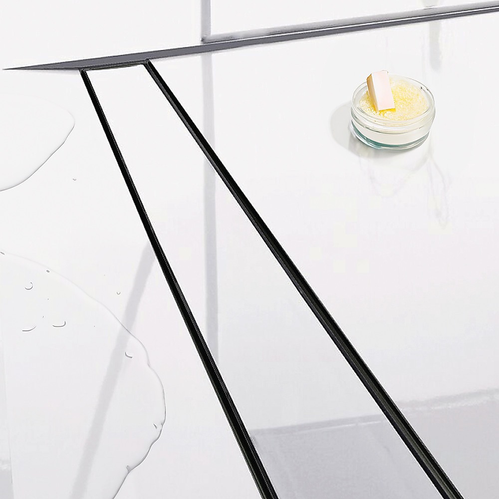 The practical yet eye-catching black shower grate features a frameless design that allows it to be seamlessly inserted into the shower's tiling configuration. The grate with its high quality 304 stainless steel construction provides durability and longevity as well as resistance to corrosion.