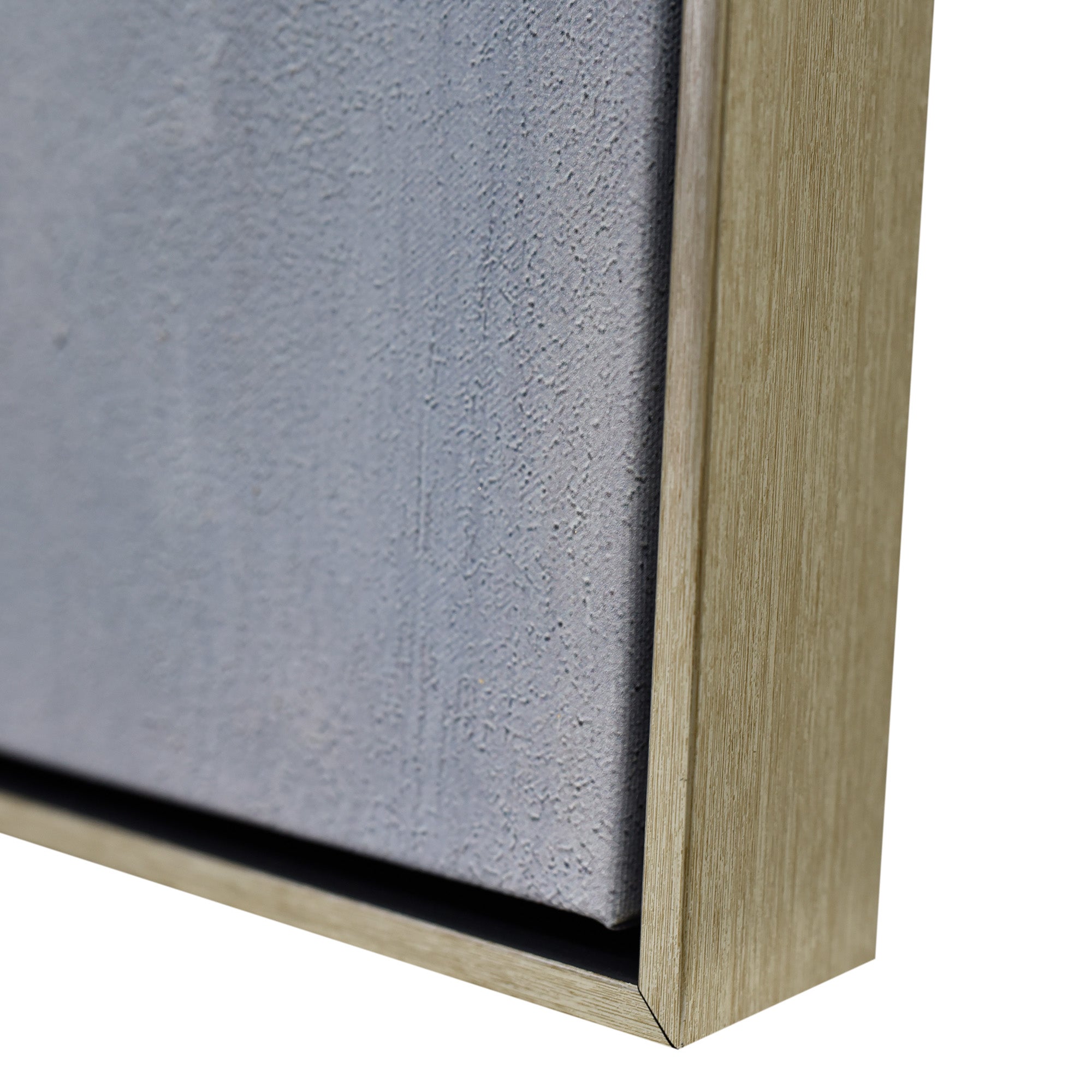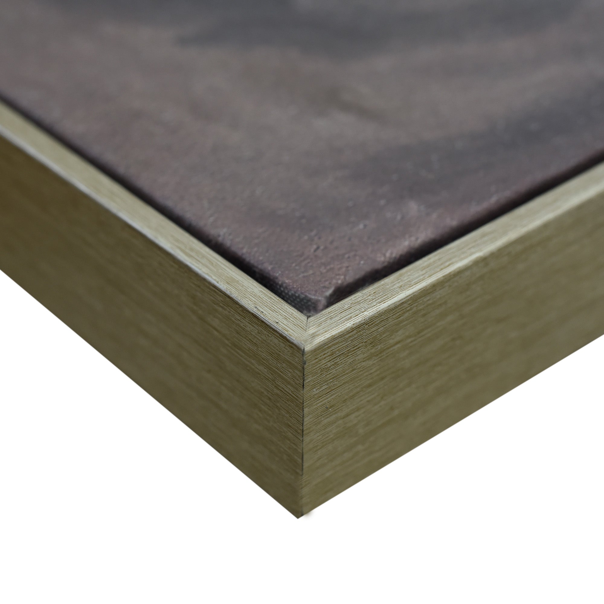 Stretched and gallery wrapped around a wooden stretcher and finished with a floating frame. There is a gap between the frame and print, which creates the floating effect and literally makes the canvas print stand out even more.