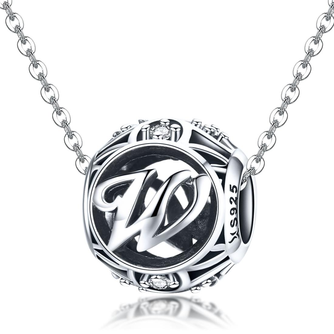 925 Sterling Silver 26 English Letter Beads For Diy Bracelets & Necklaces Style – W