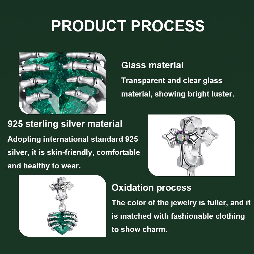 • 1 x 925 Sterling Silver Cross Skull Heart Bracelet Beaded Accessory
