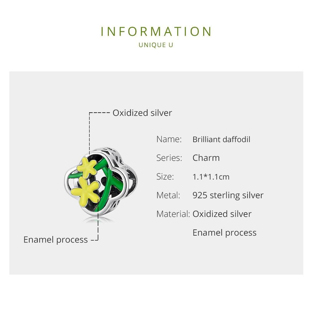 • 1 x 925 Sterling Silver Delicate Daffodil Beads For Diy Bracelets Necklaces