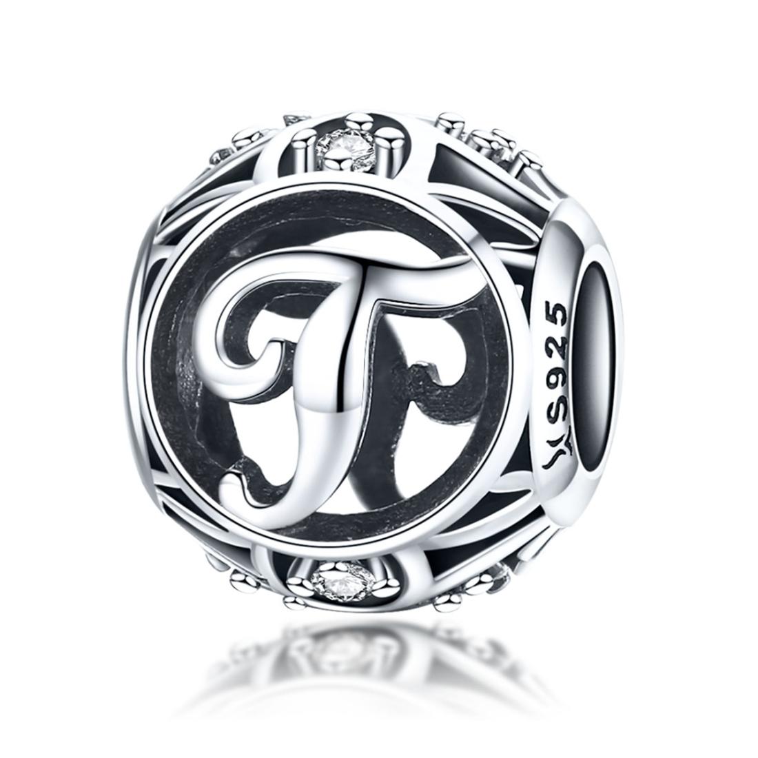 925 Sterling Silver Letter Beads For Diy Bracelets & Necklaces Style – T