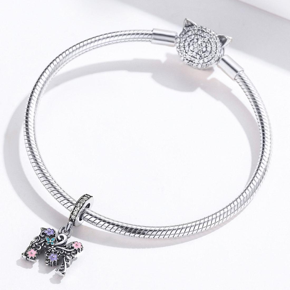 925 Sterling Silver Letter M Pendant For Diy Bracelets & Necklaces
