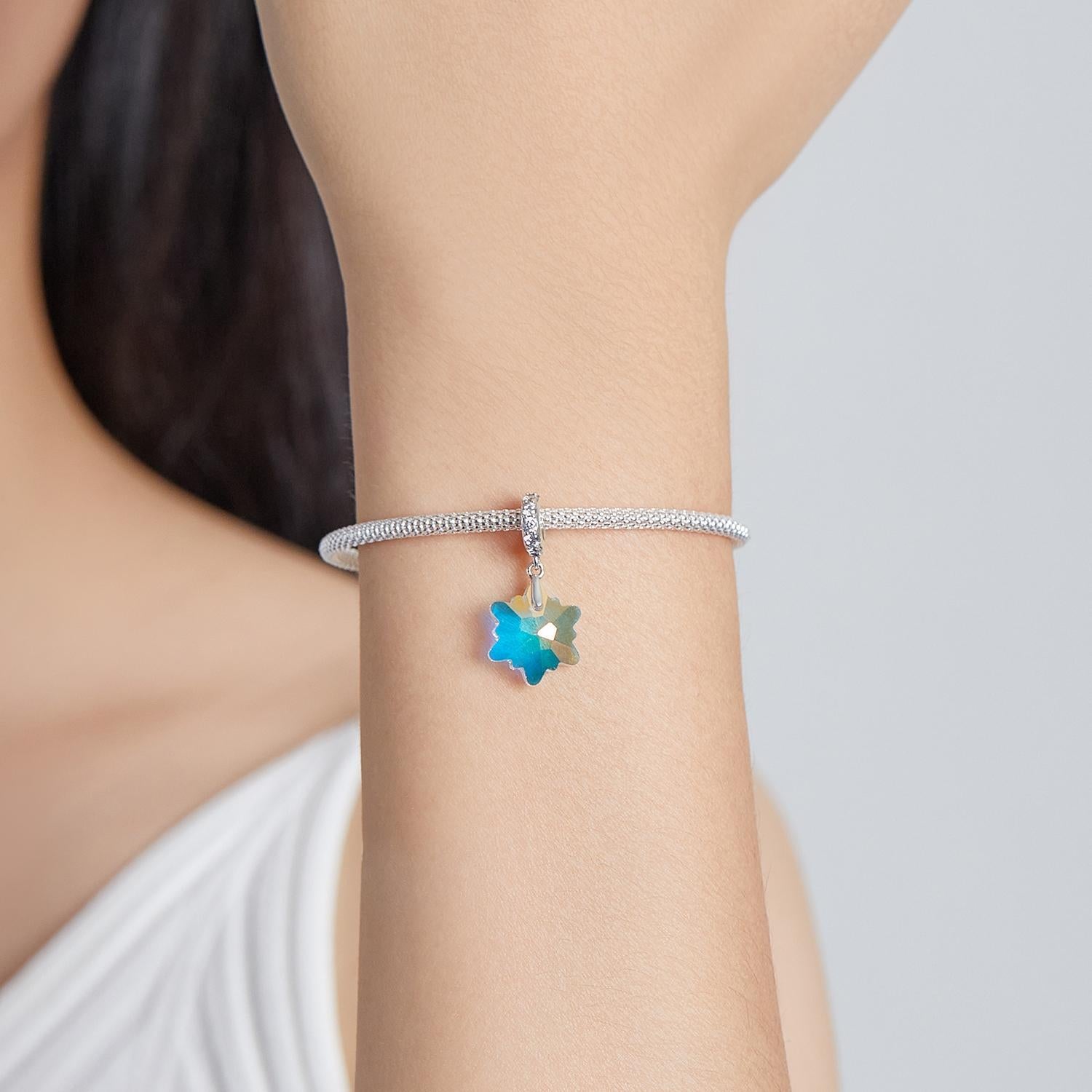 925 Sterling Silver Sparkling Snowflake Pendant For Diy Bracelets & Necklaces