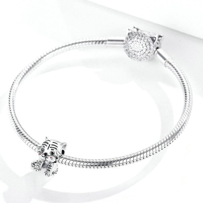 925 Sterling Silver Tiger Bead Pendant For Diy Bracelets & Necklaces