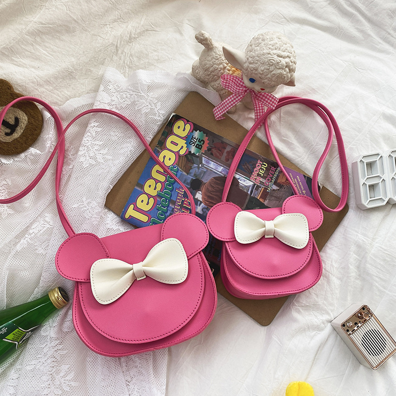 Adorable Bow Bear Crossbody Bag for Kids – Rose Red Small Shoulder Bag 13*13*5cm