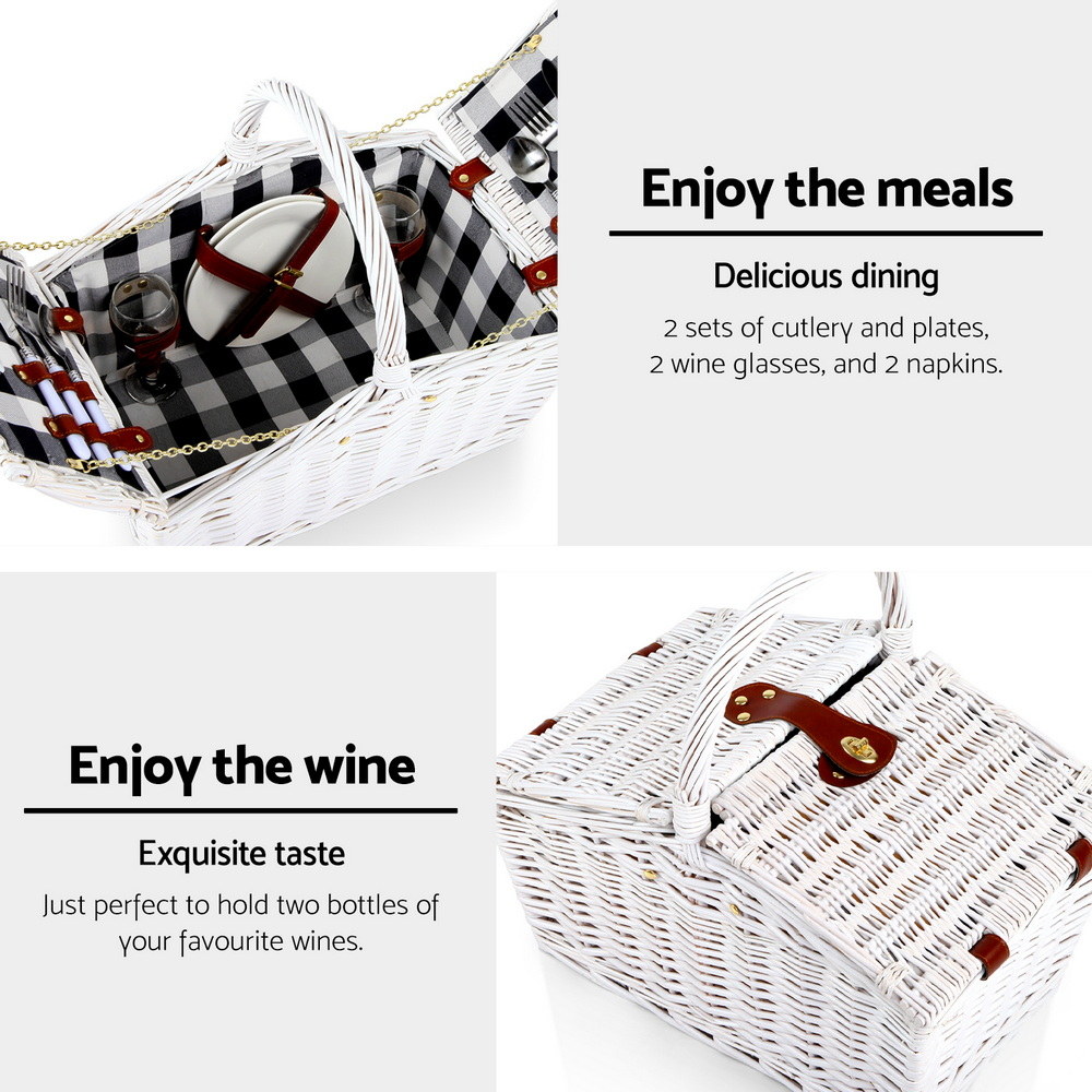 Alfresco 2 Person Picnic Basket Set Willow Vintage Baskets Insulated Blanket Bag