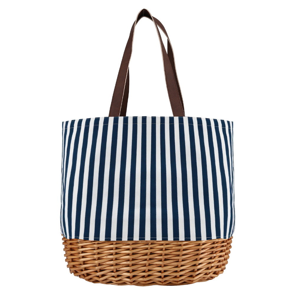 Introducing the Alfresco Willow Tote Basket�where unique charm meets patented design. Crafted from durable woven willow and classic canvas stripes, this basket blends timeless elegance with robust construction for lifelong adventures.