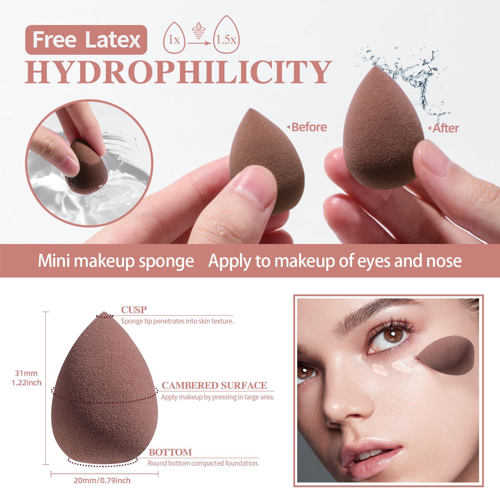 • Versatile Makeup Sponges: Comes with latex-free, hydrophilic makeup sponges that expand when wet. Perfect for both wet use (with liquid foundation) and dry use (with powdery cosmetics), ensuring a smooth, even blend.