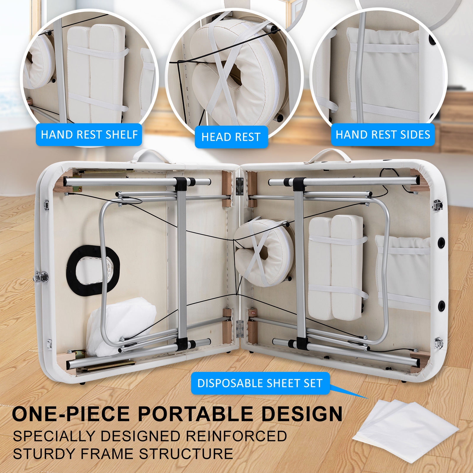 Forever Beauty Portable Beauty Massage Table Bed 3 Fold 70cm Aluminium Therapy Waxing – White