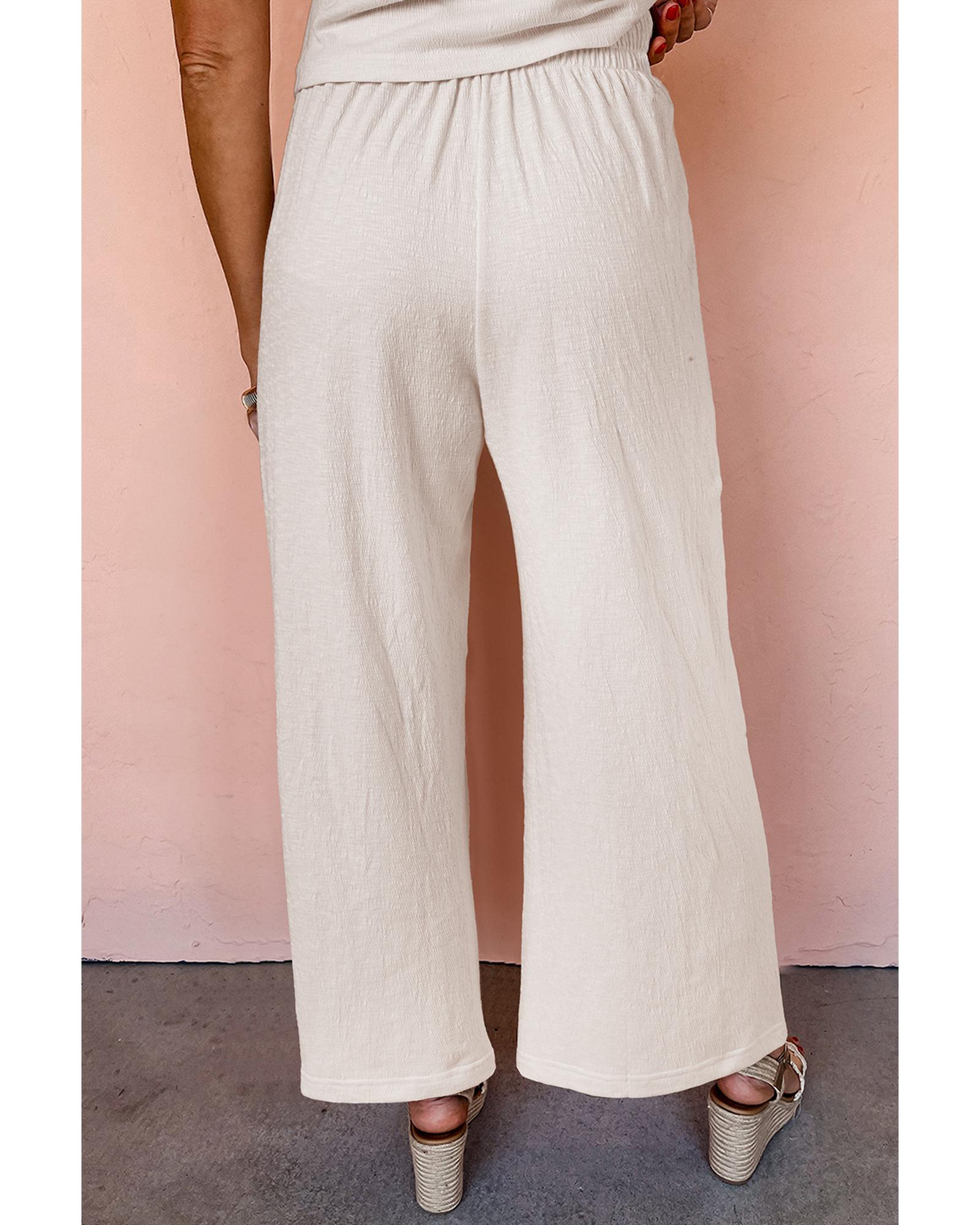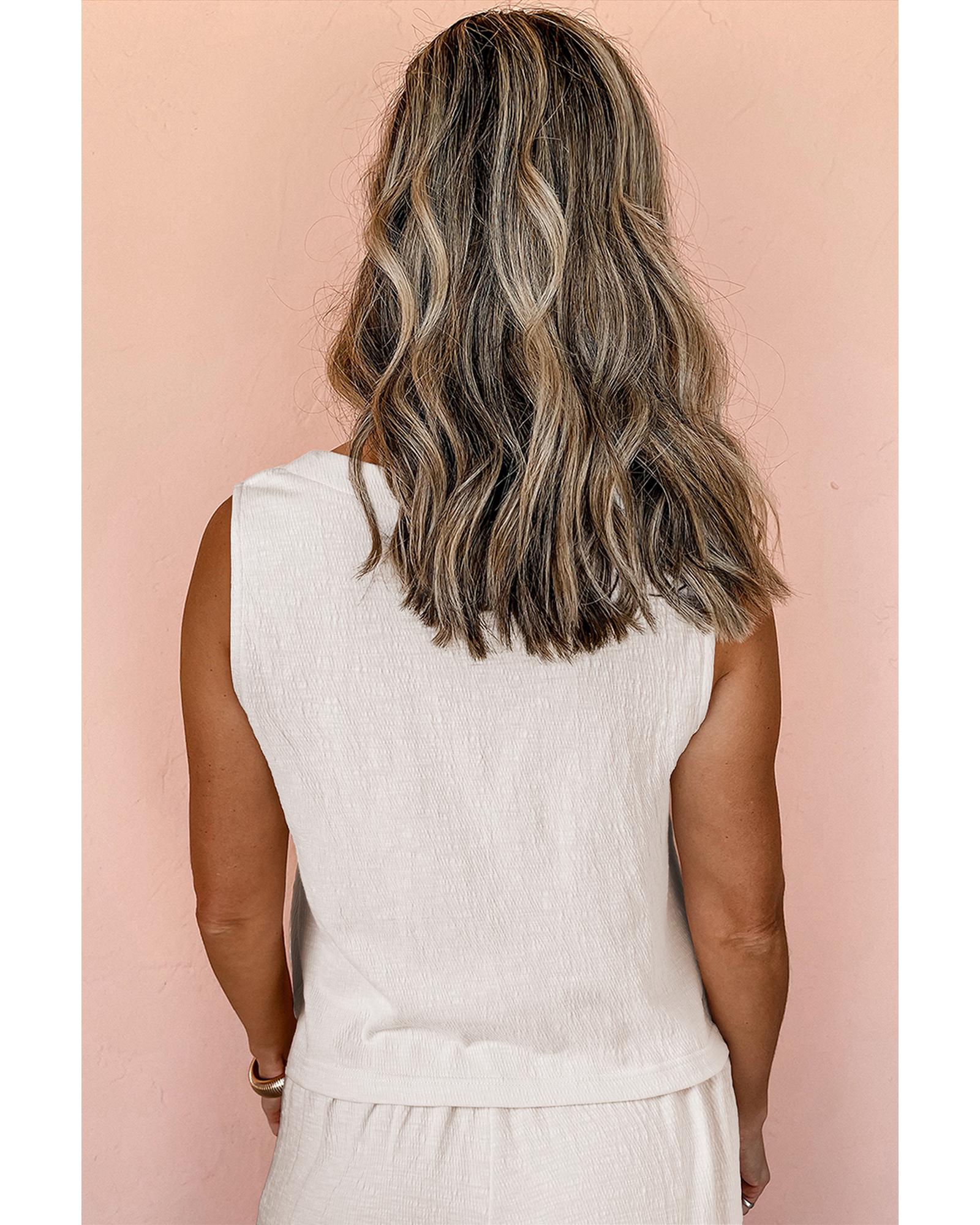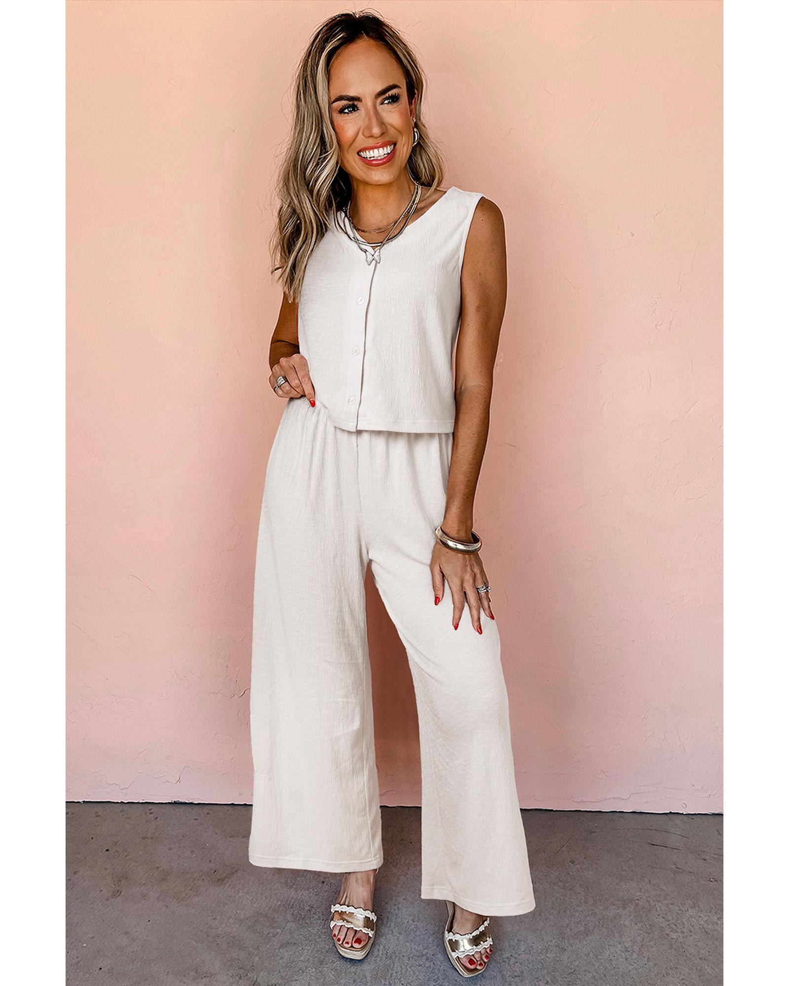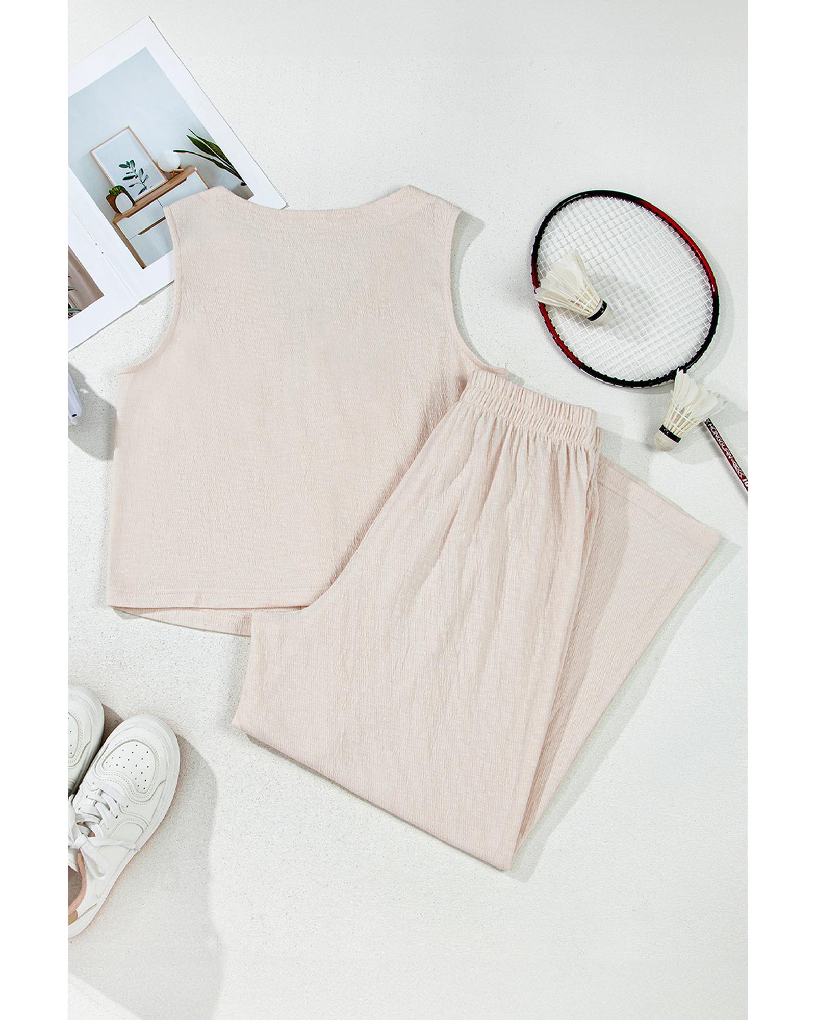 Apricot Buttoned V Neck Tank Top and Wide Leg Pants Casual Outfit – XL