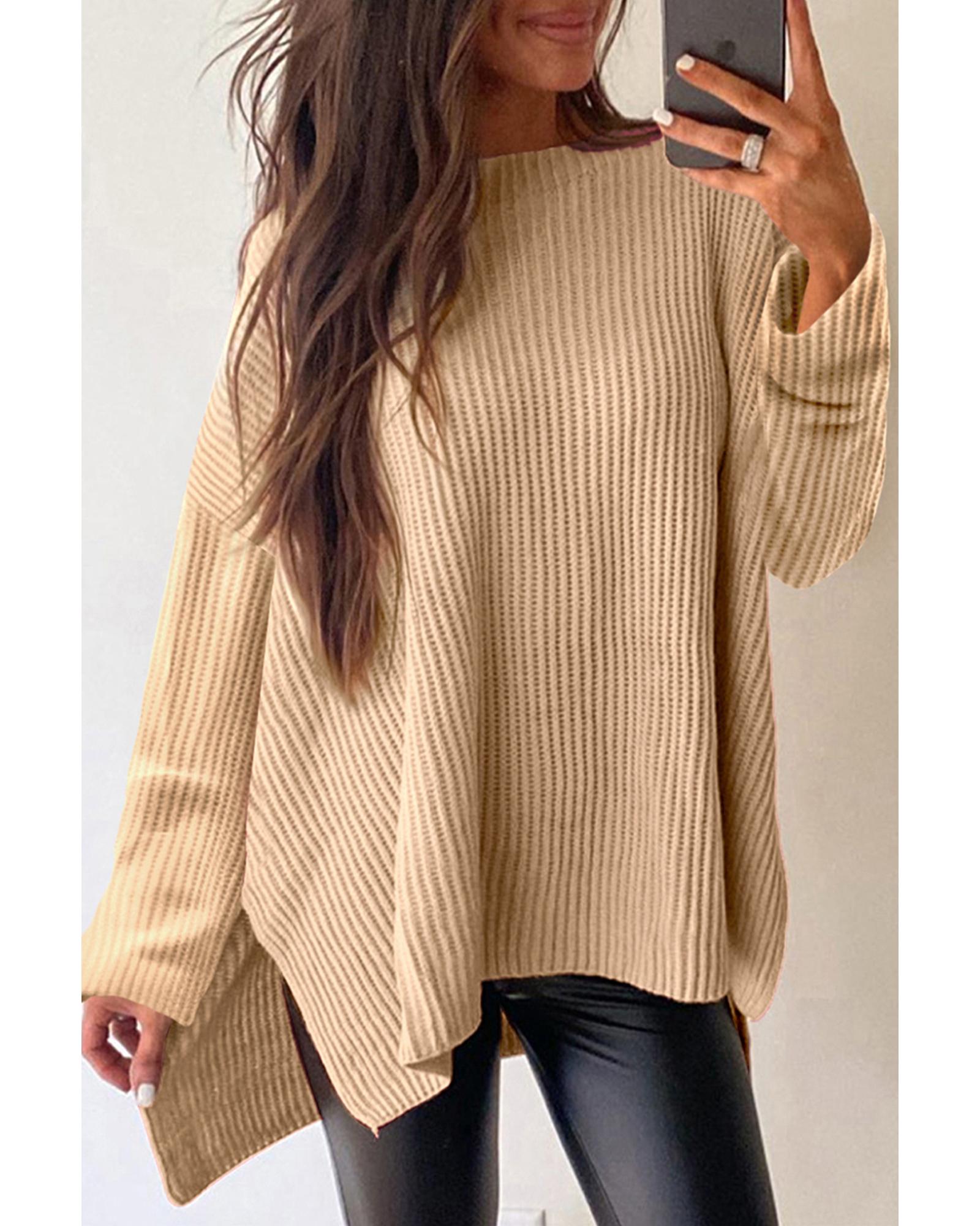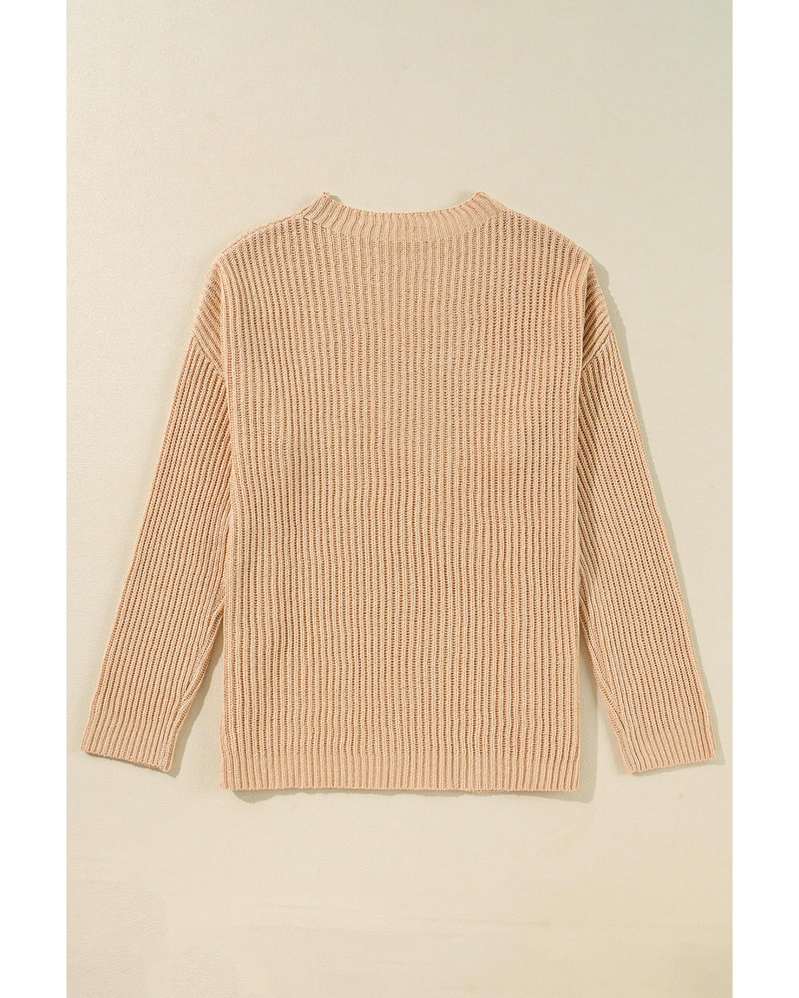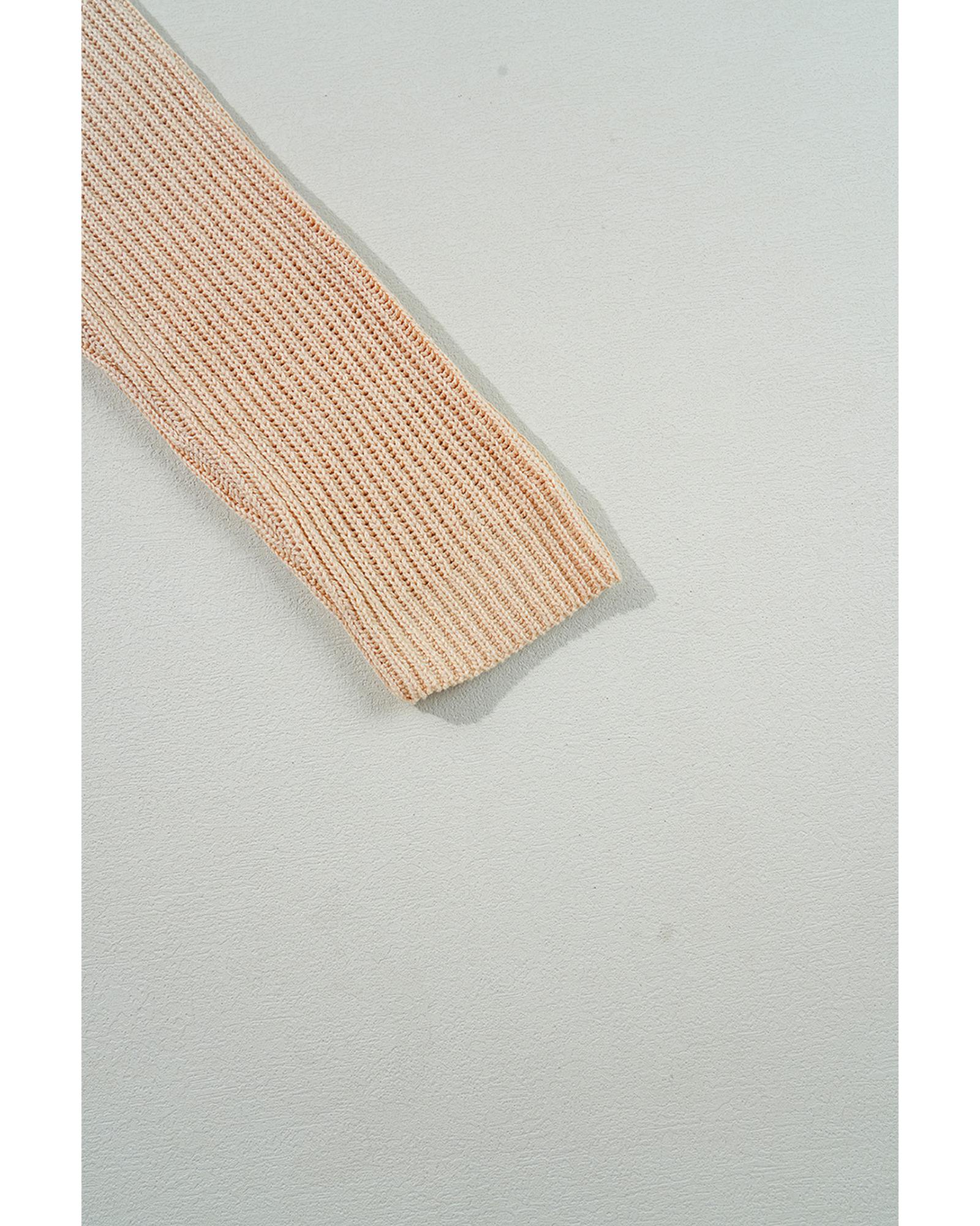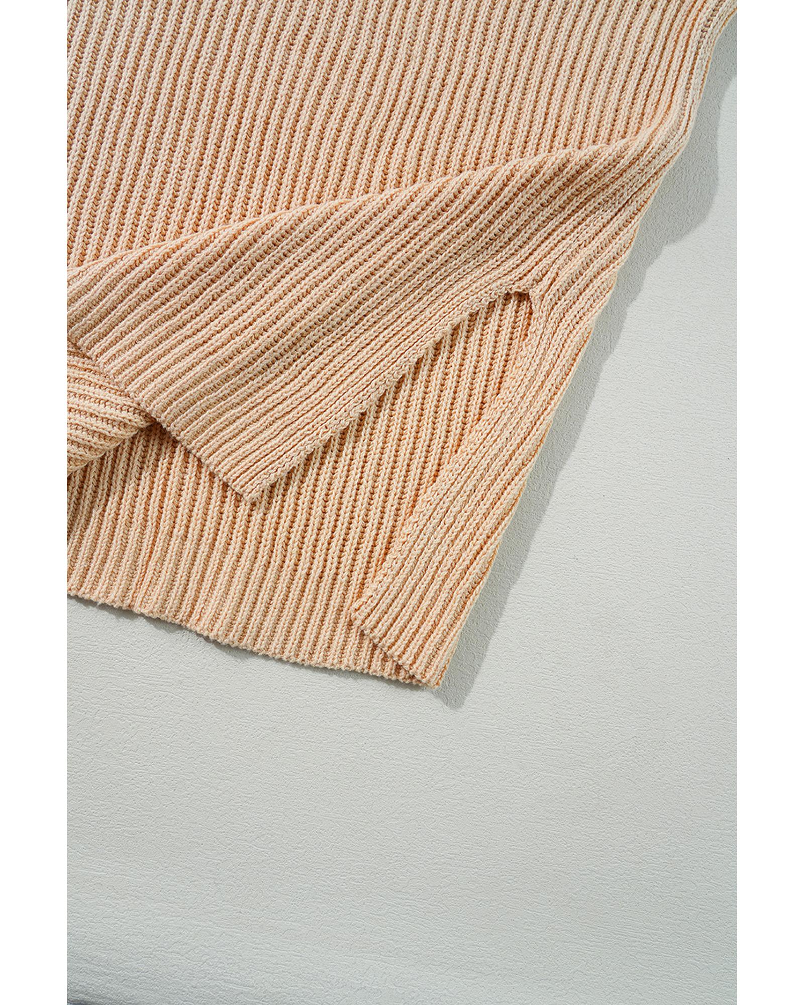 Apricot Cable Knit Drop Shoulder Side Slits Loose Sweater – S