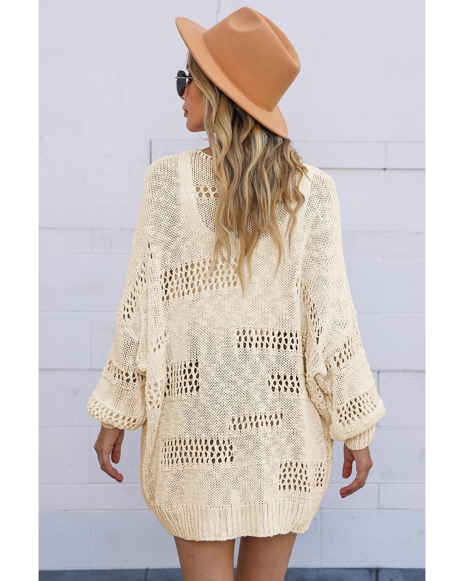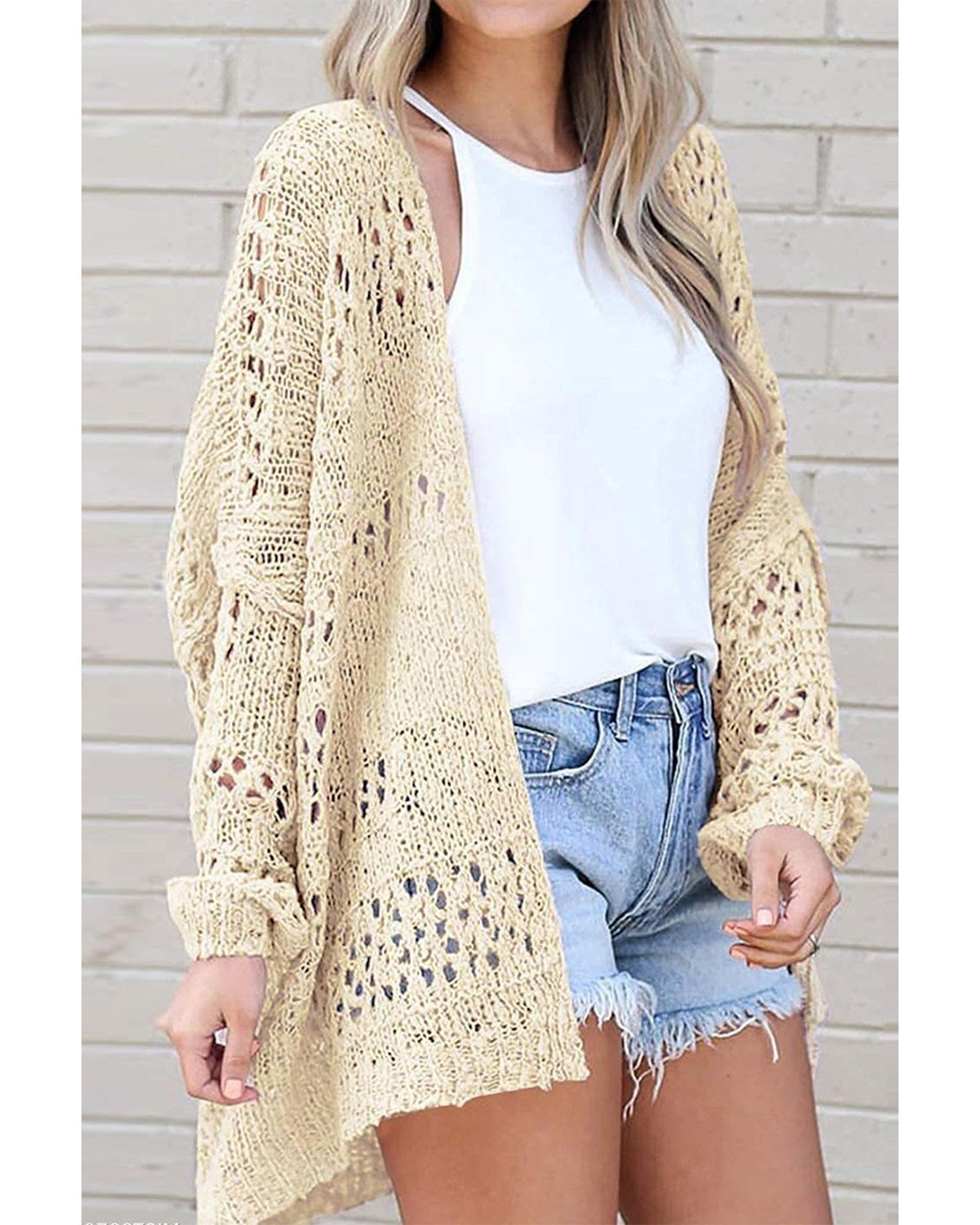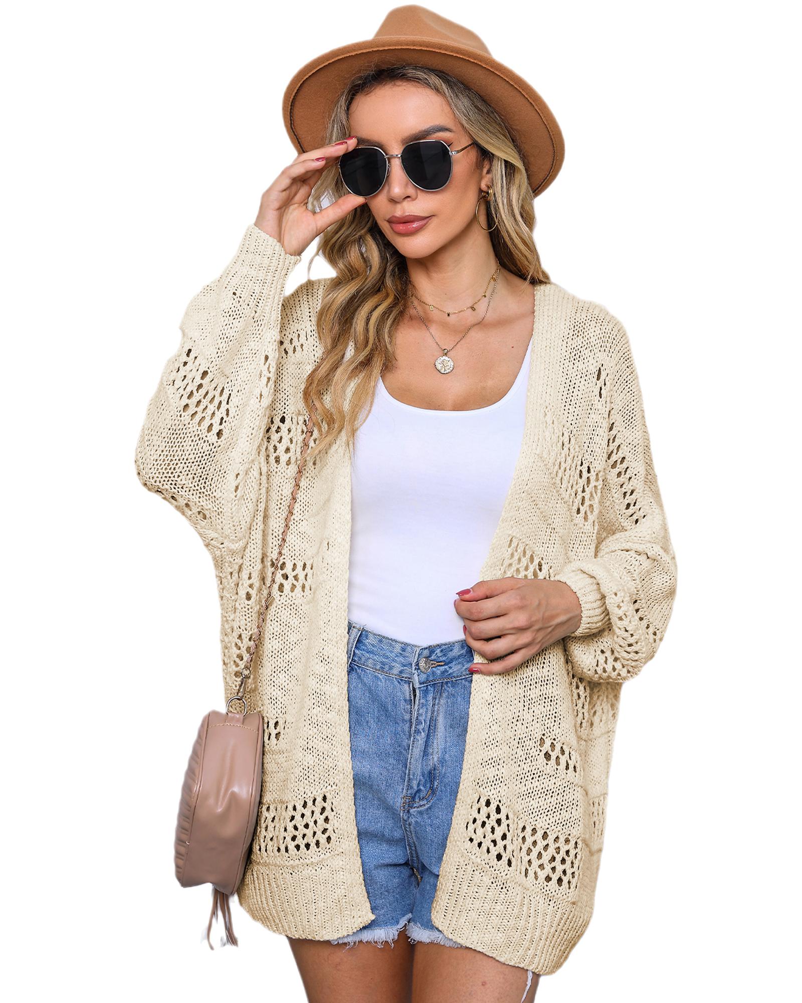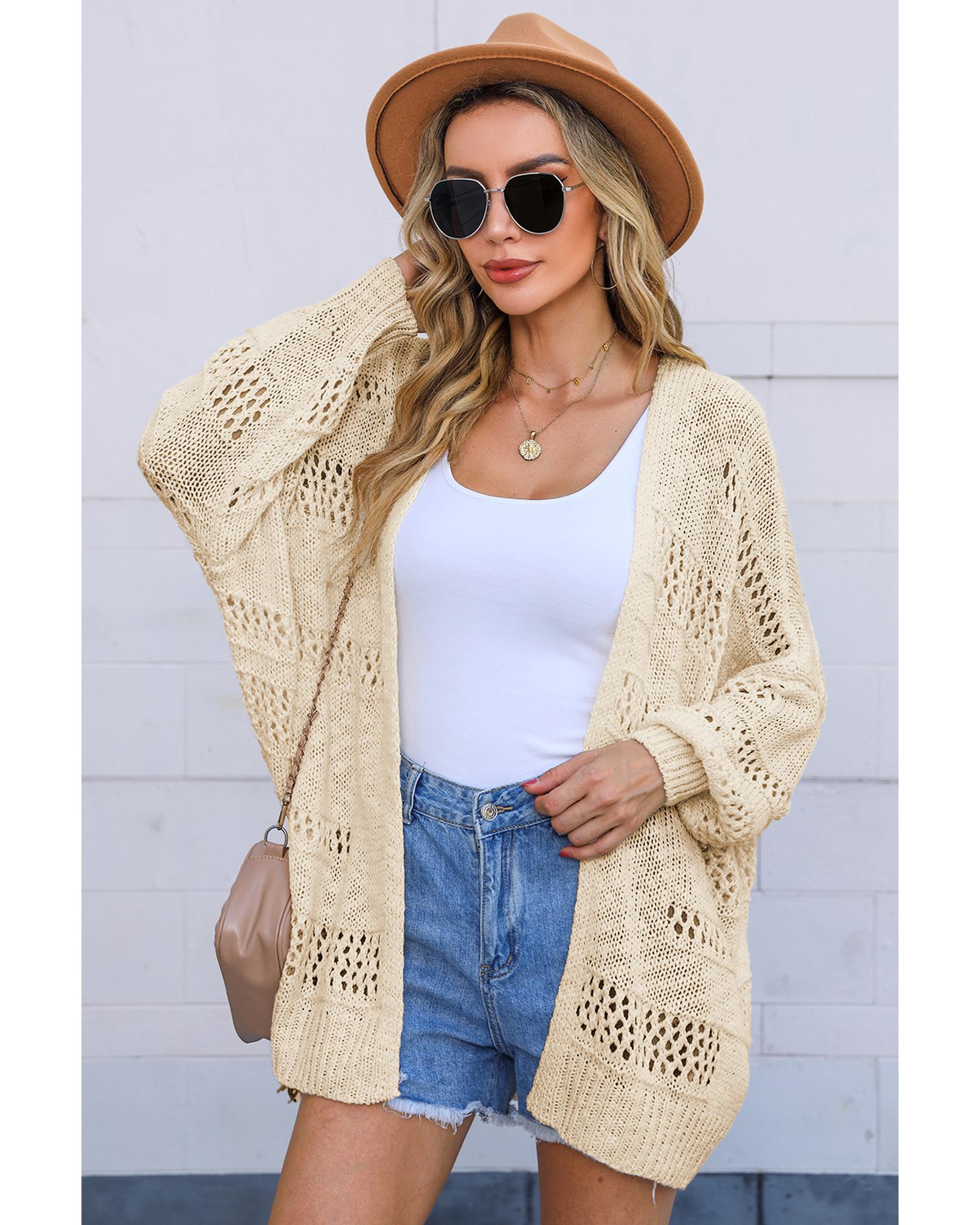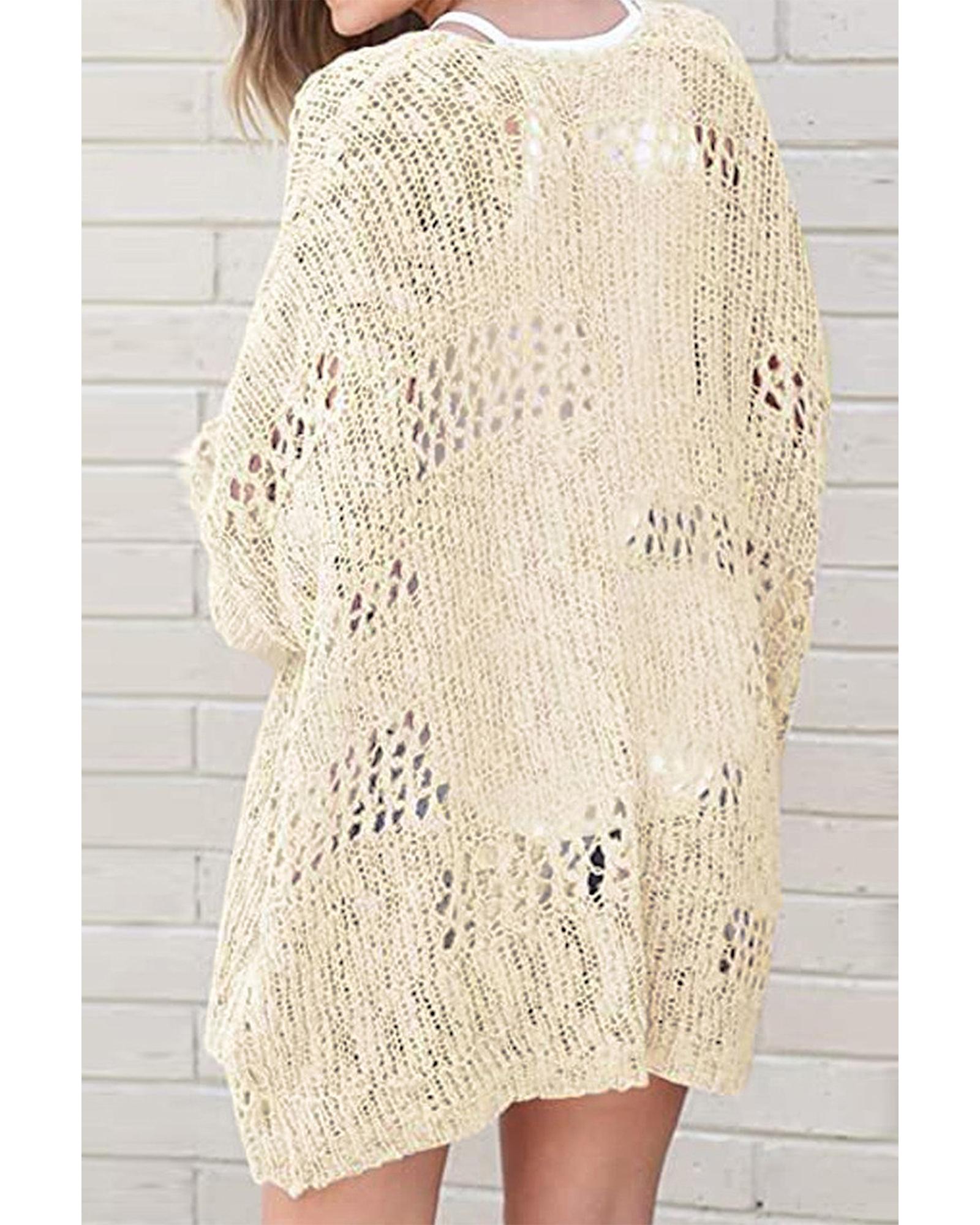 Apricot Casual Hollowed Knit Dolman Sleeve Cardigan – L