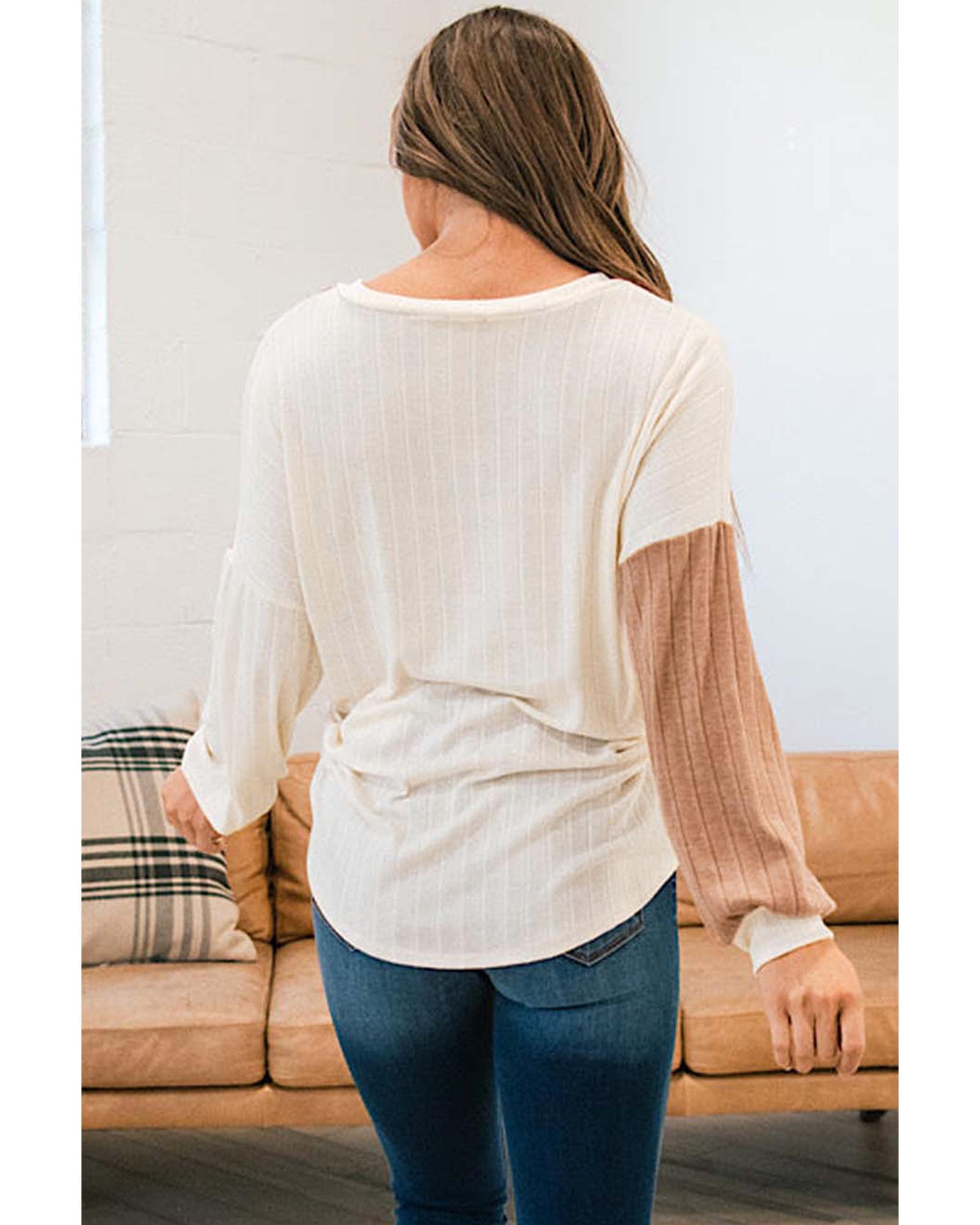 Apricot Color Block Wide Ribbed V Neck Top – XL