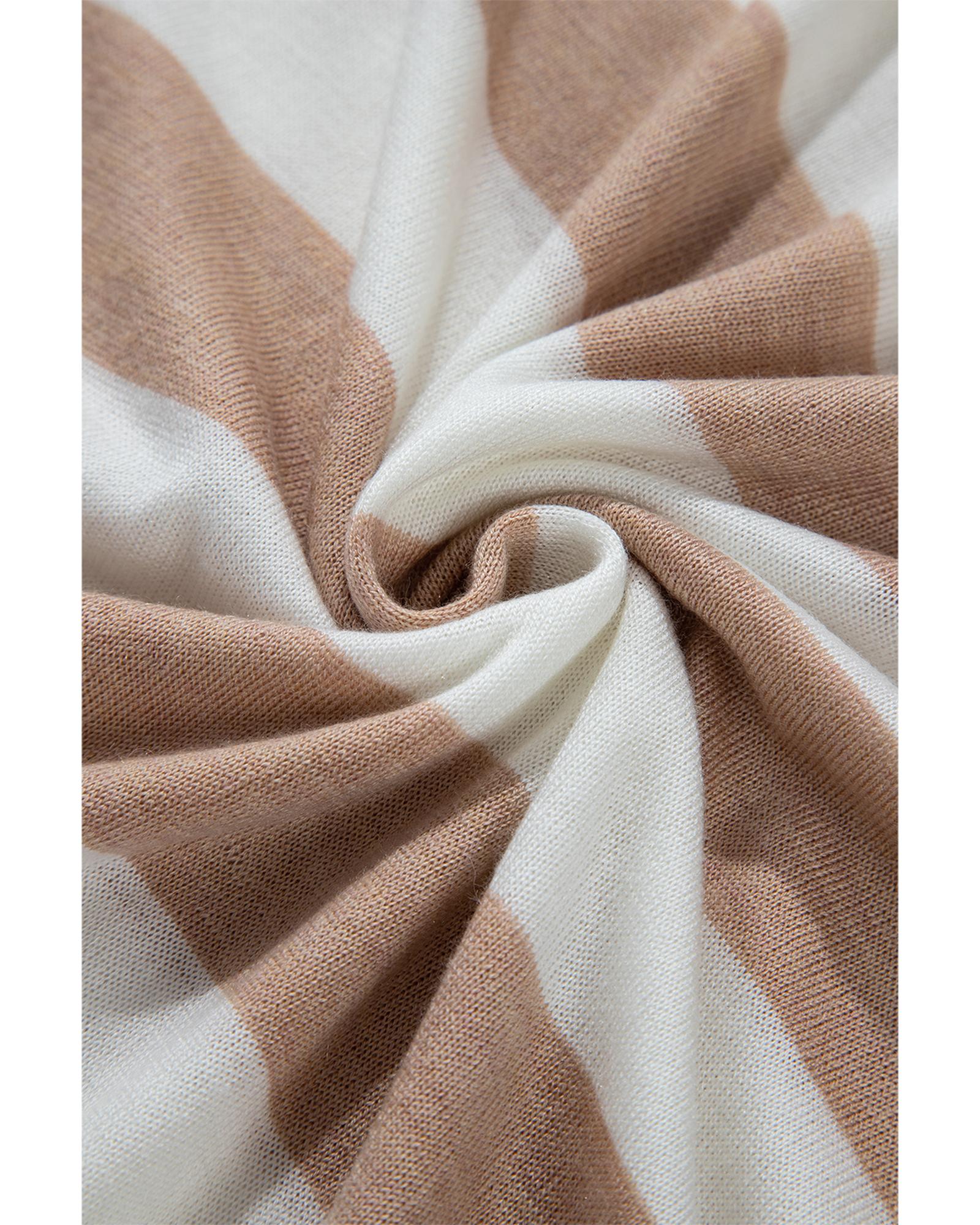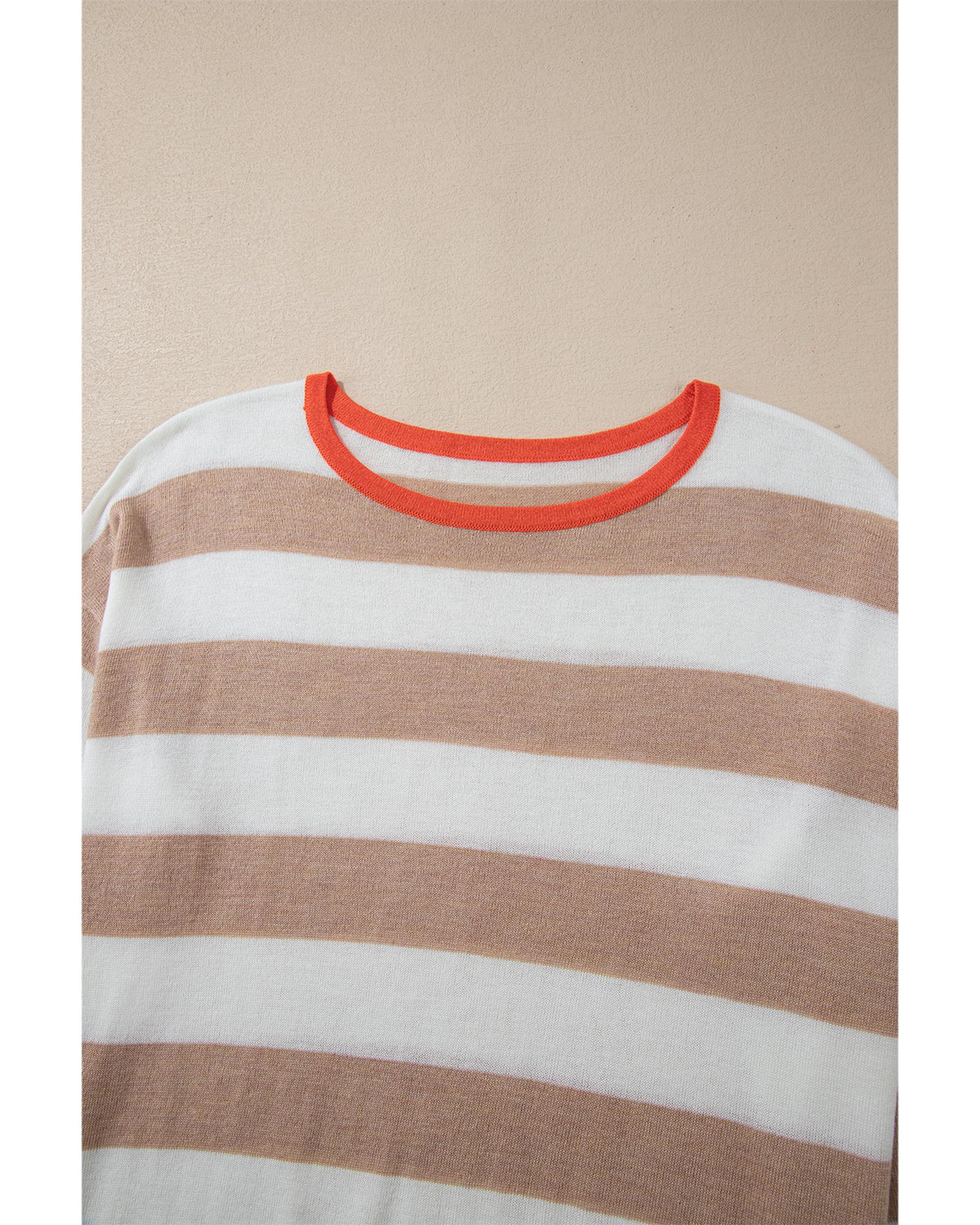 Apricot Colorblock Striped Round Neck Drop Shoulder Sweater – XL