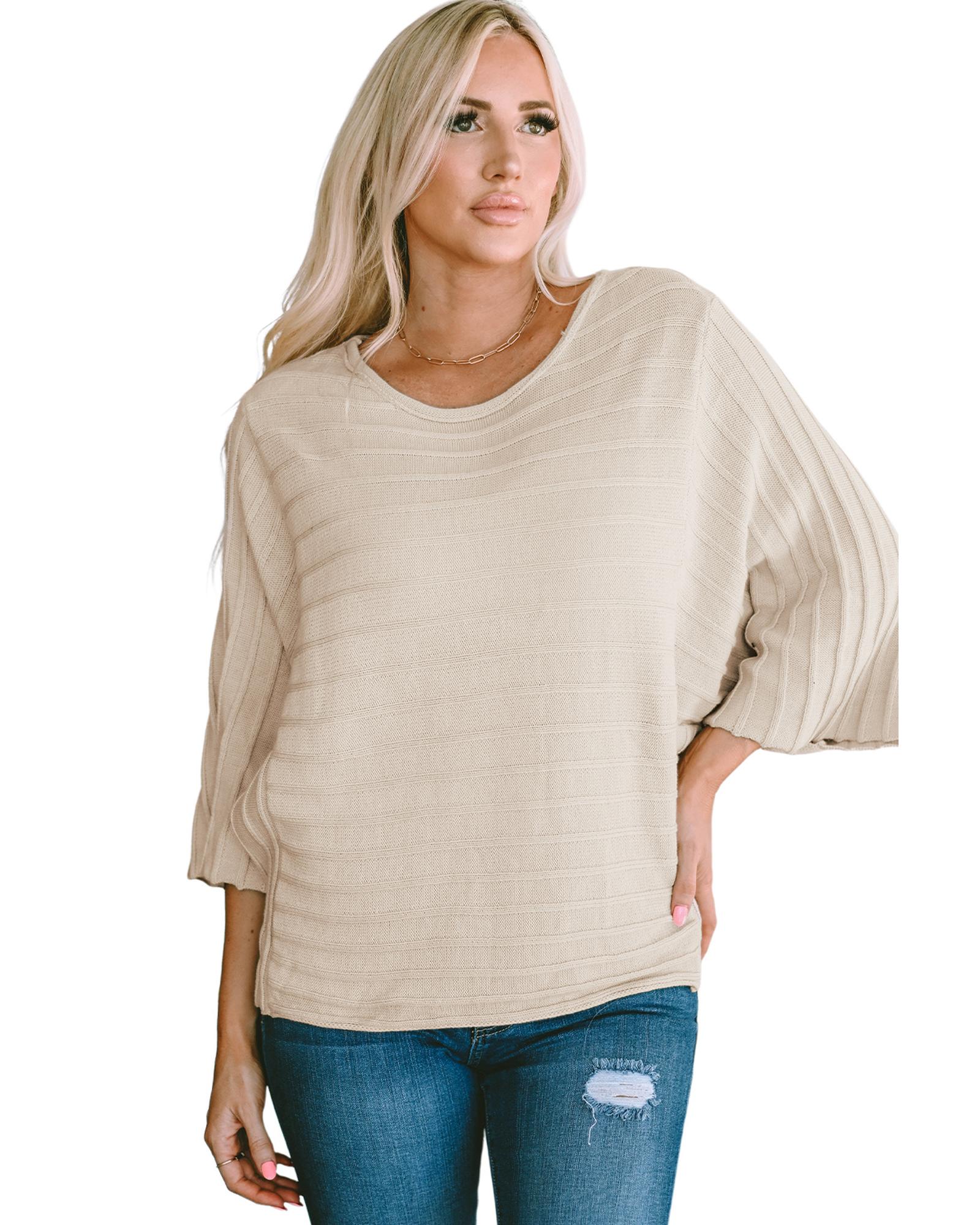Apricot Exposed Seam Ribbed Knit Dolman Sweater – M