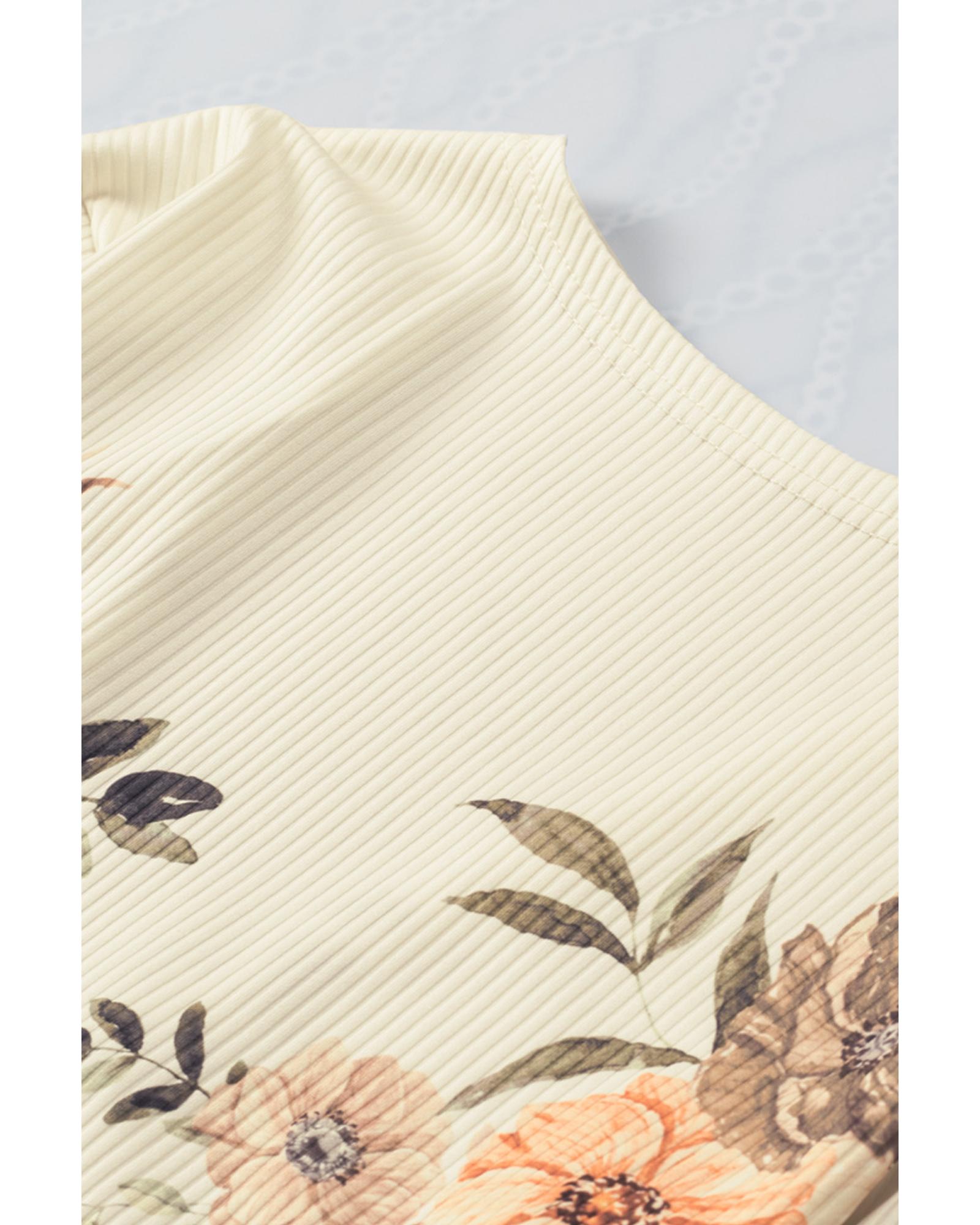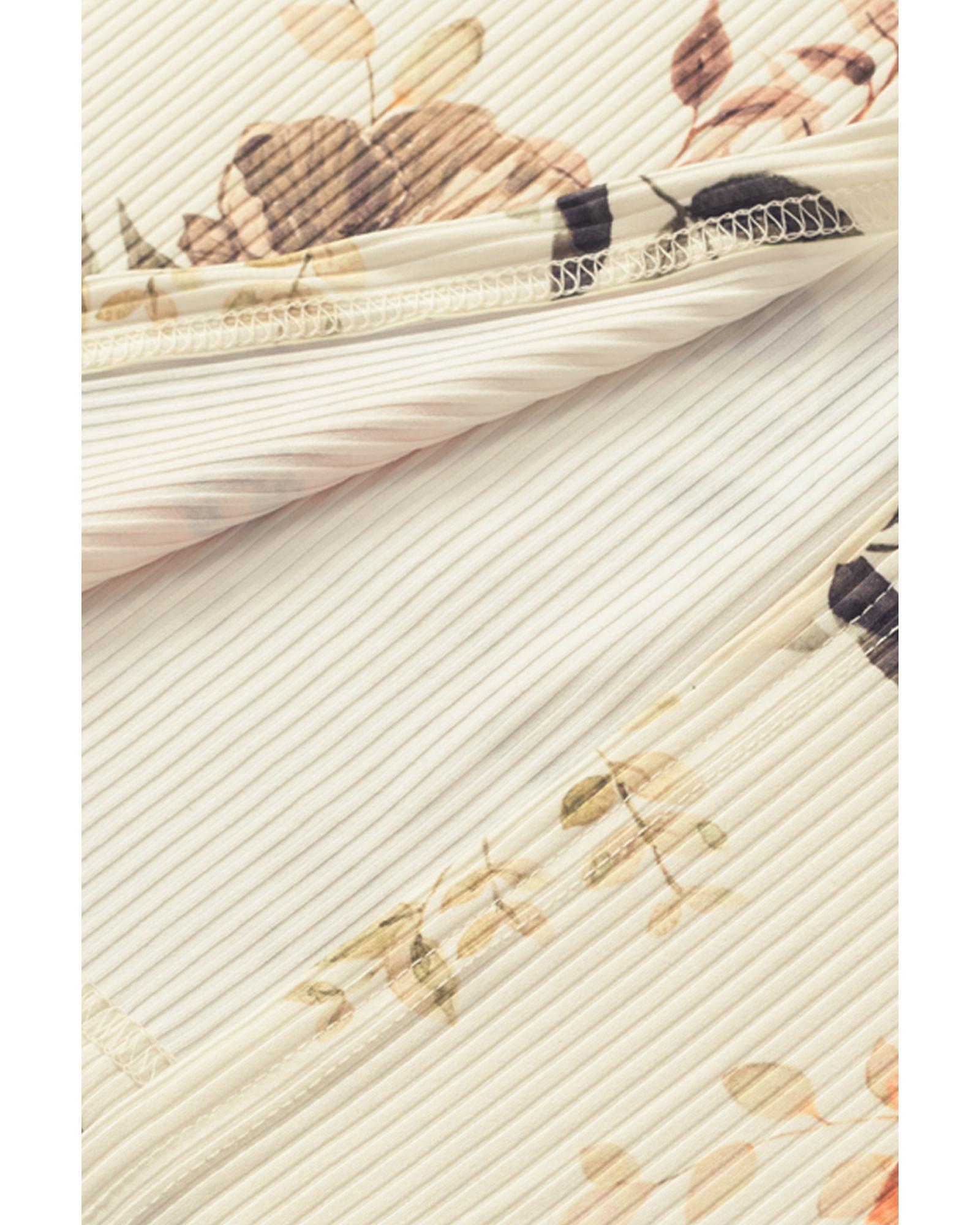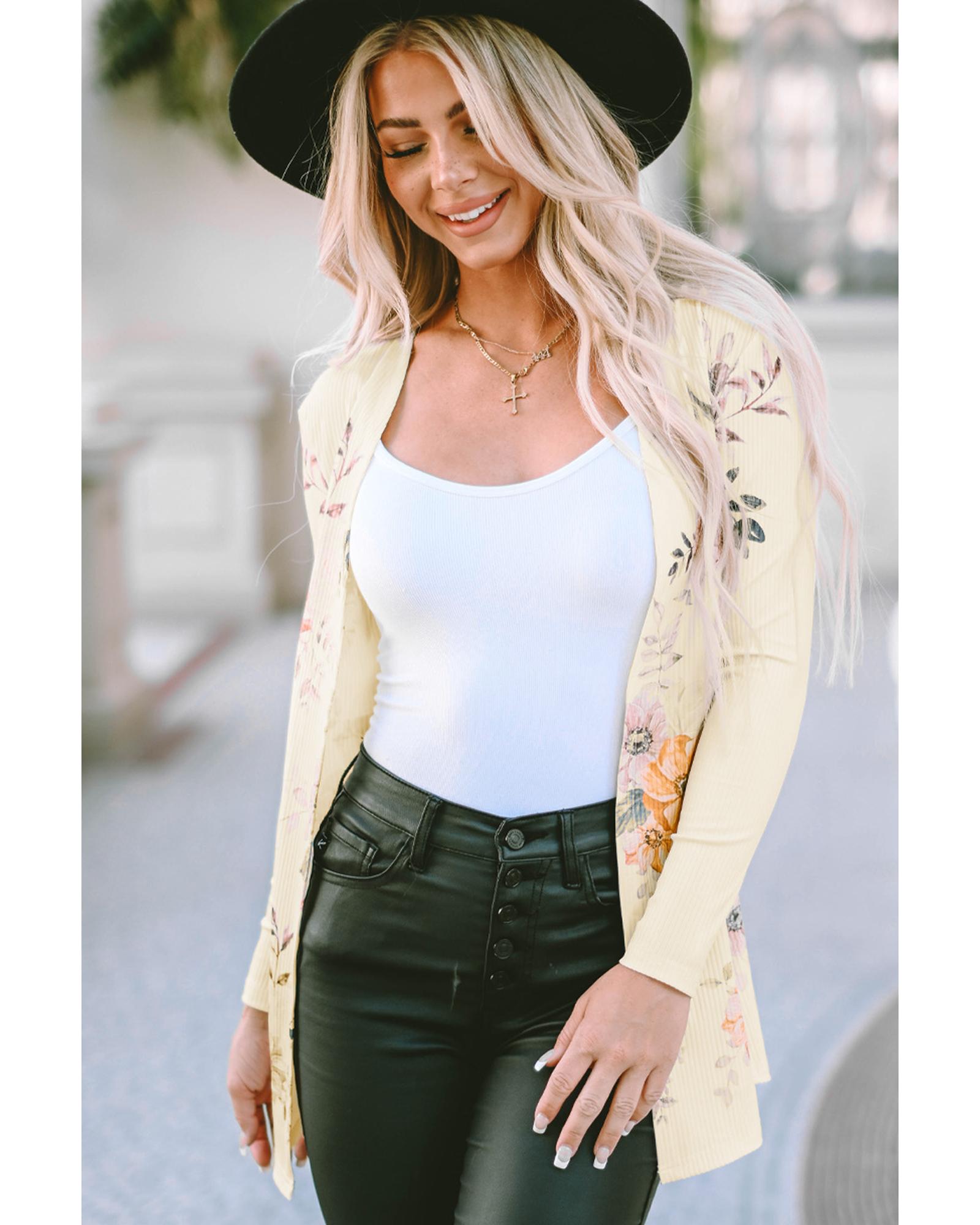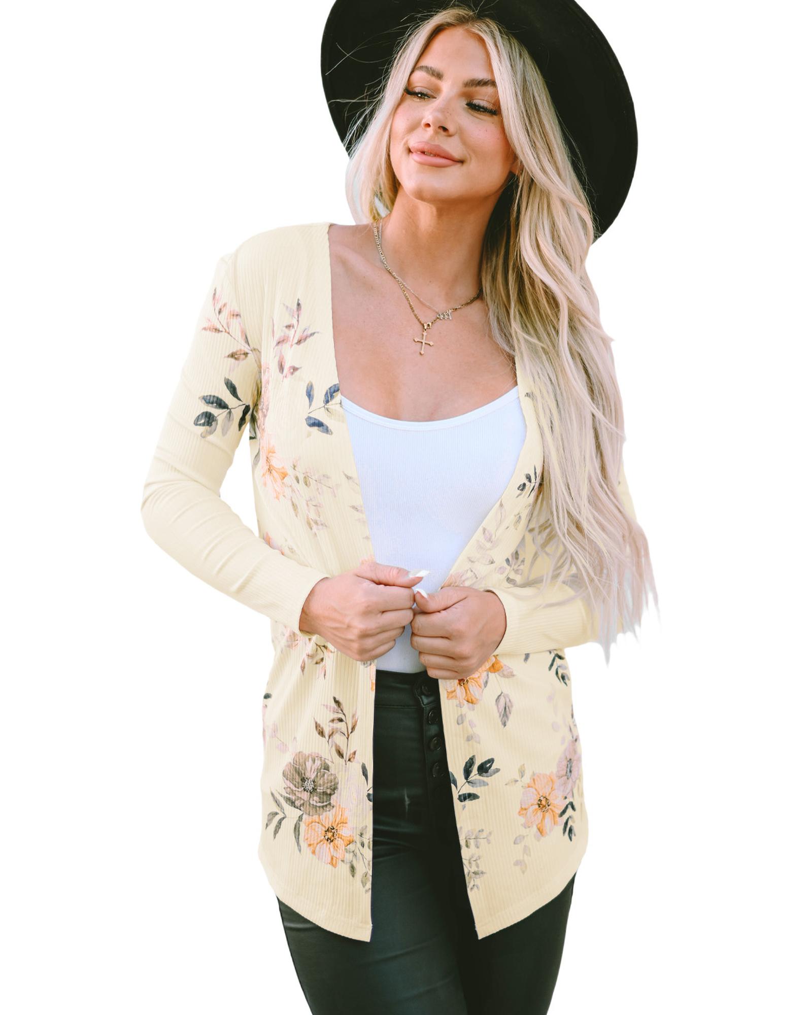 Apricot Floral Print Ribbed Knit Slim Fit Cardigan – S