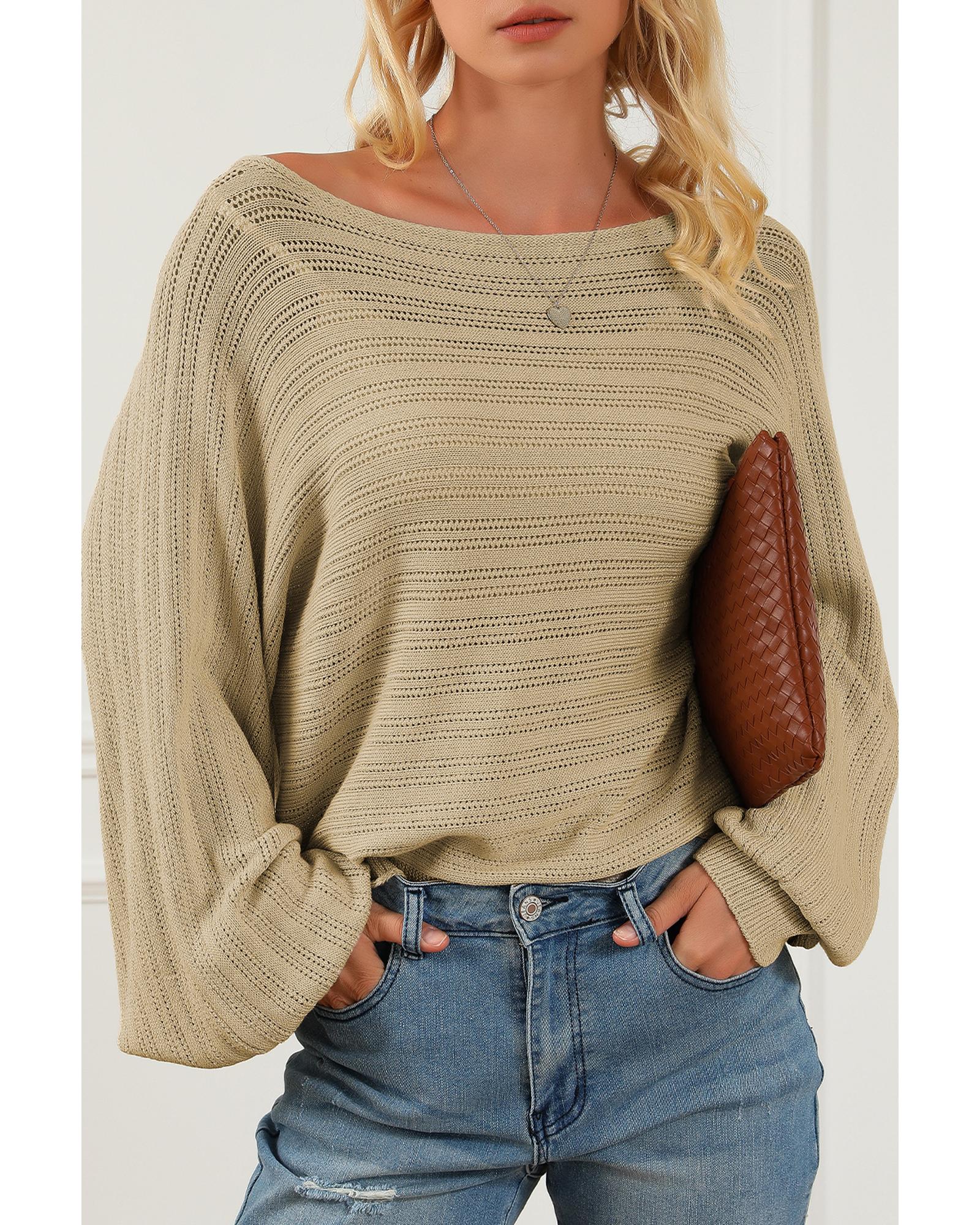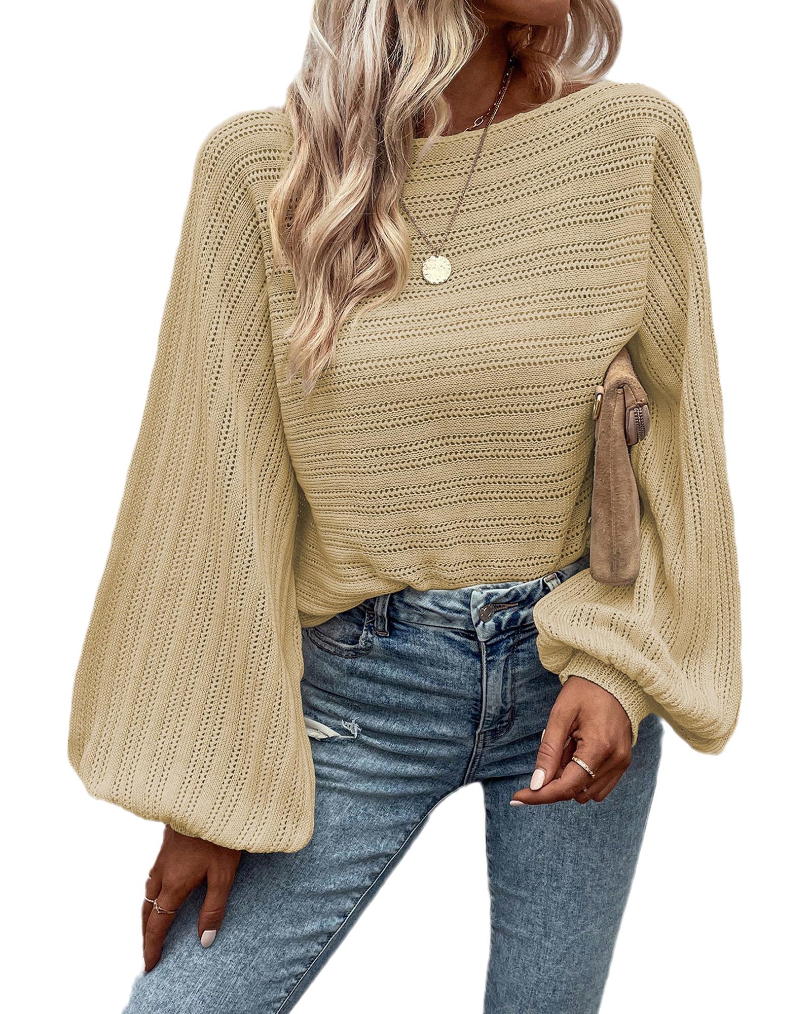 Apricot Lantern Sleeve Eyelets Textured Knit Sweater – XL