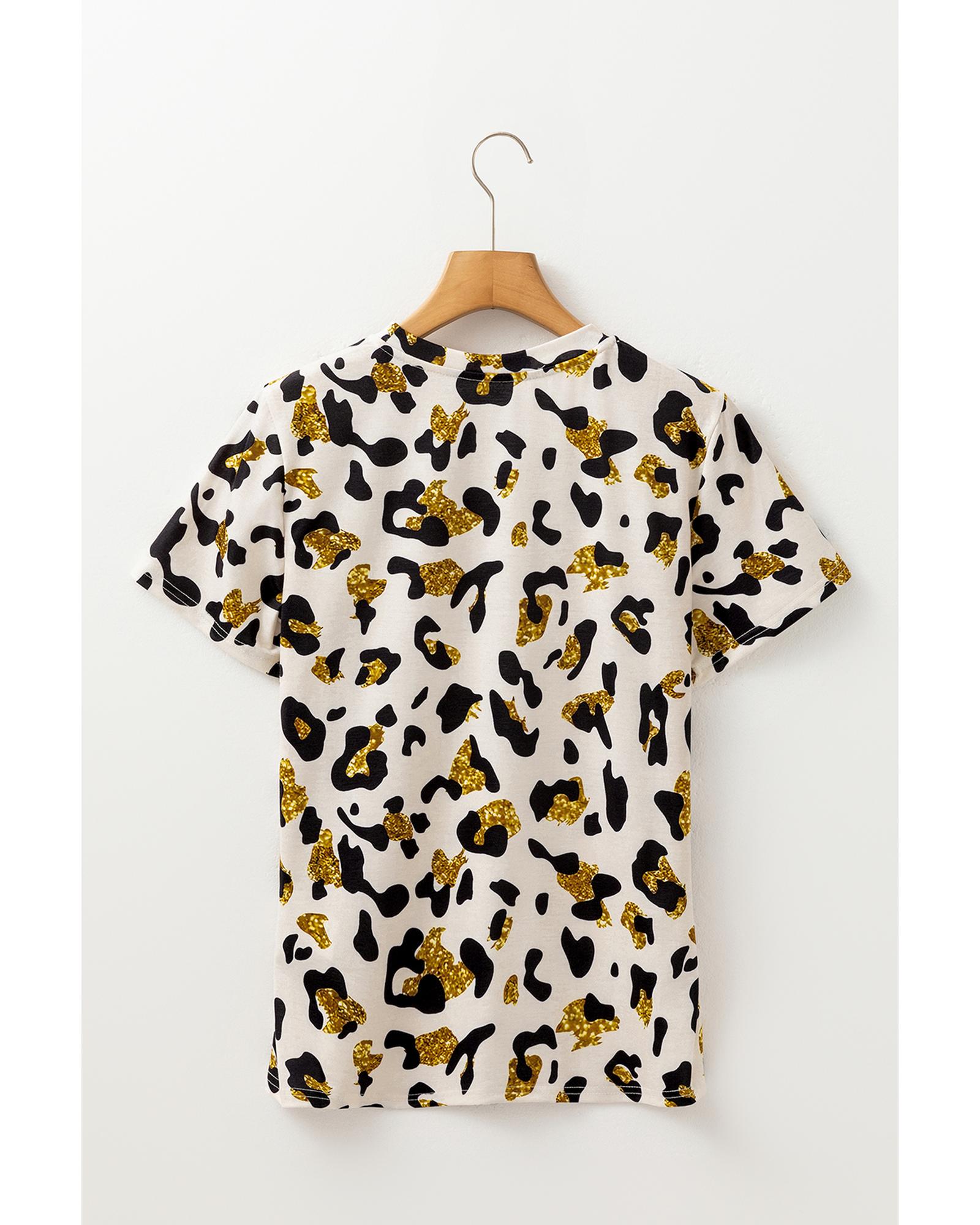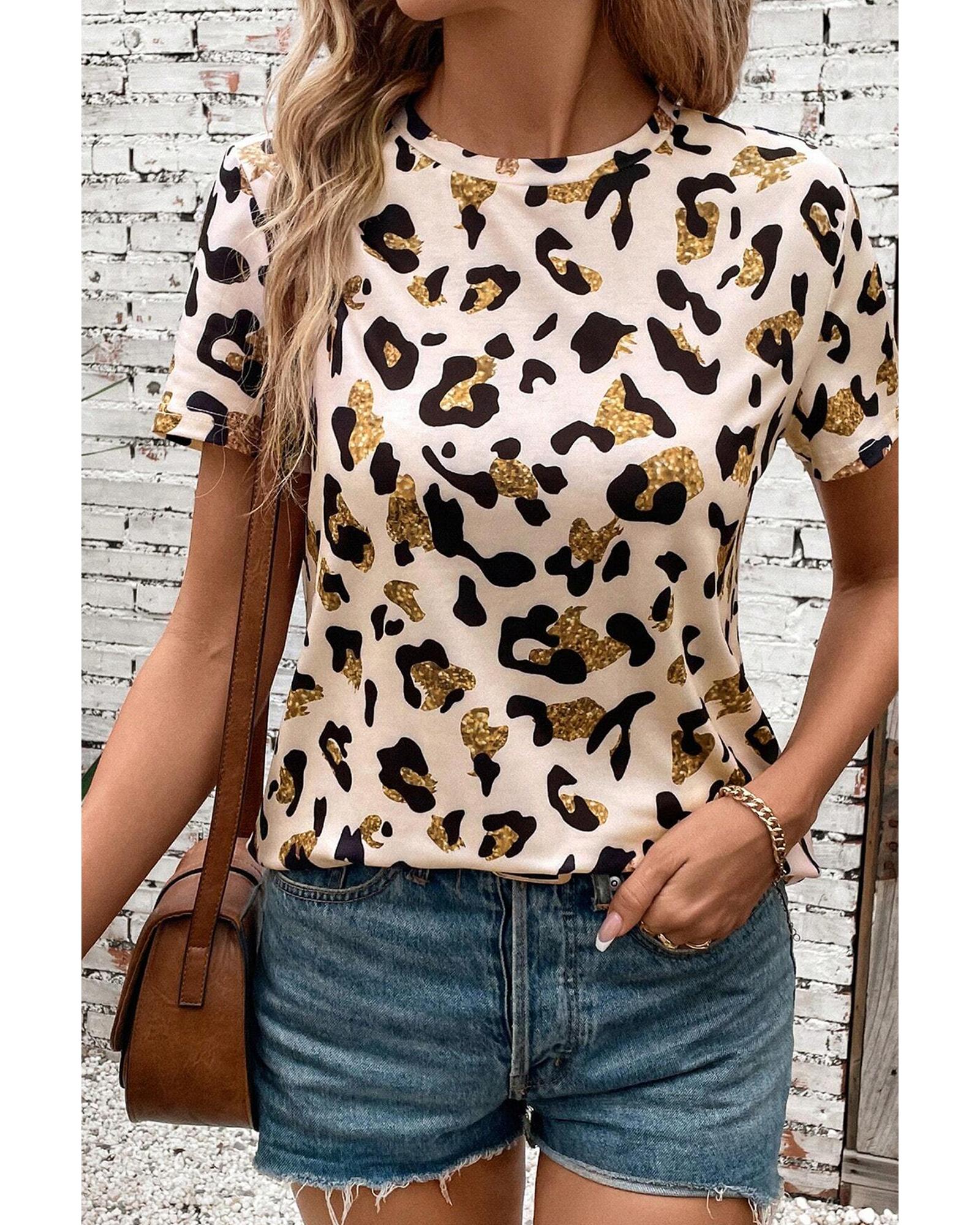 Apricot Leopard Print Round Neck Casual T Shirt – L