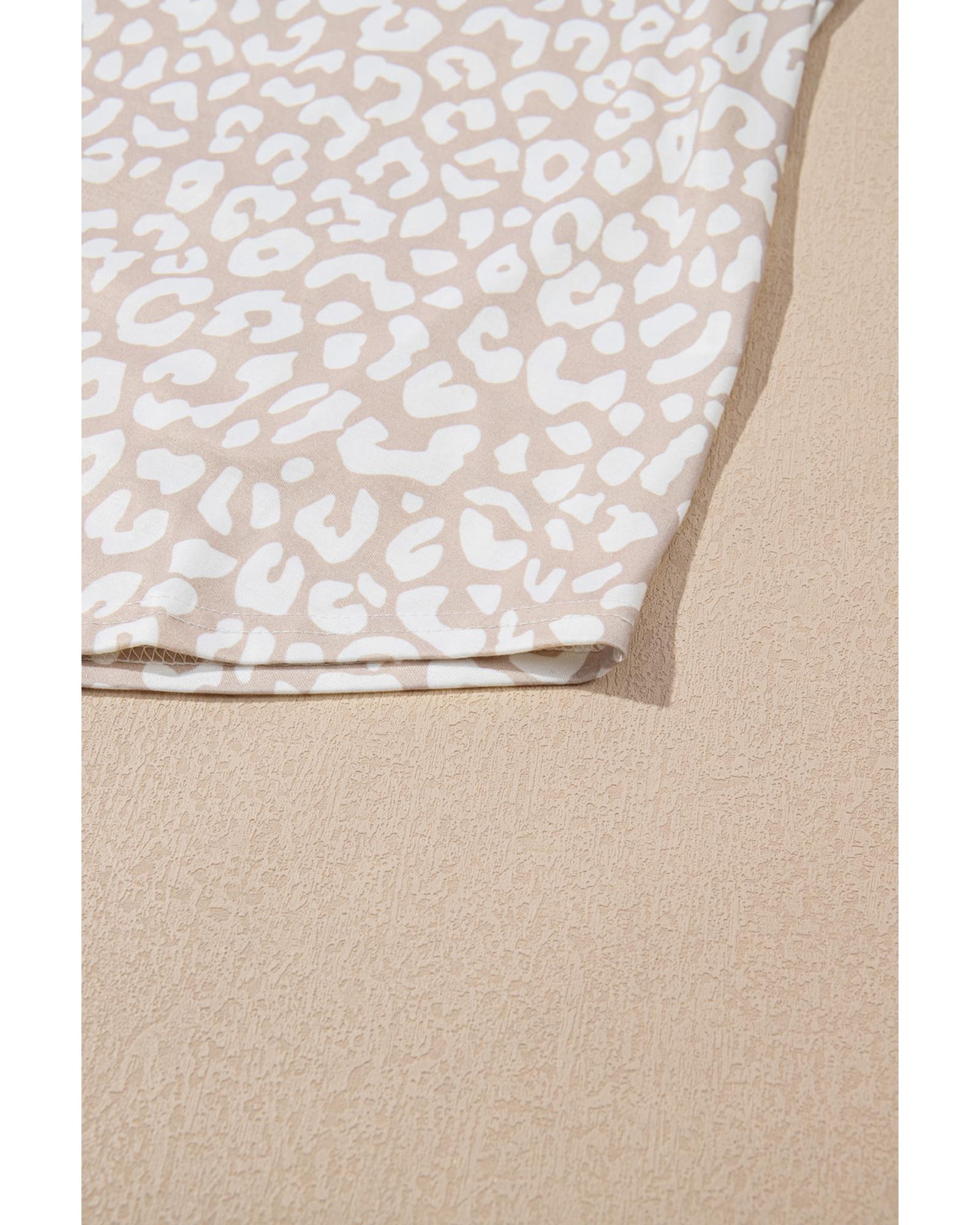 Apricot Leopard Tab Sleeve V Neck Plus Size Top – 4X