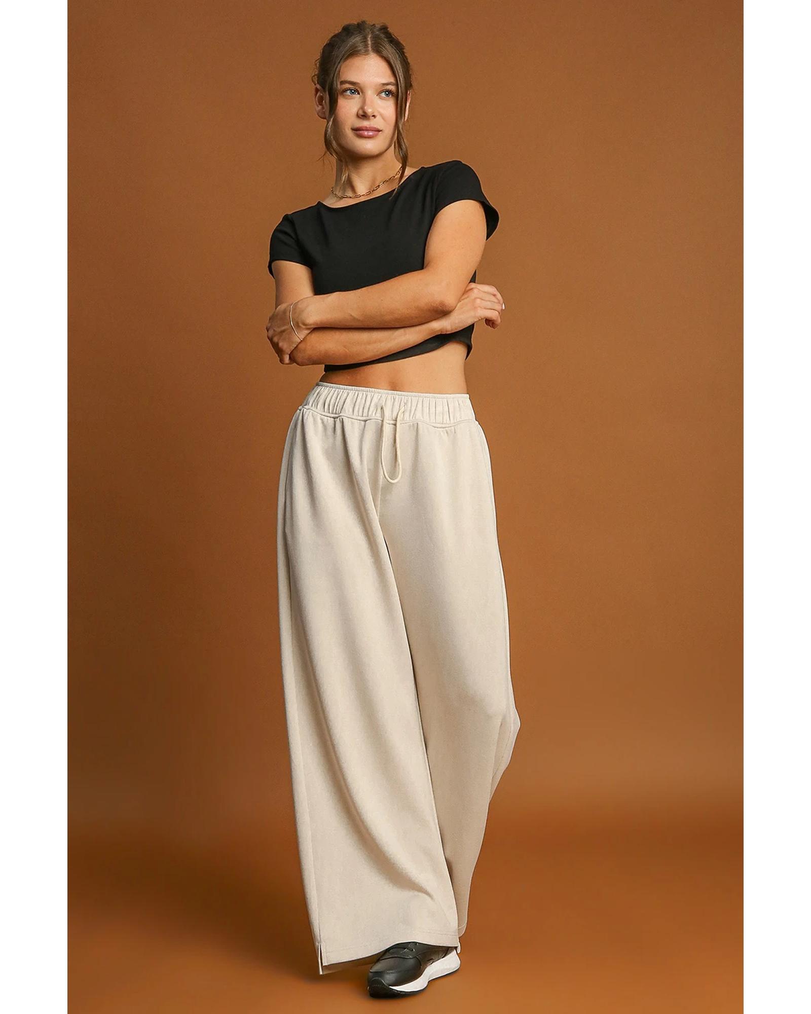 Apricot Loop Drawstring Casual Wide Leg Pants – L