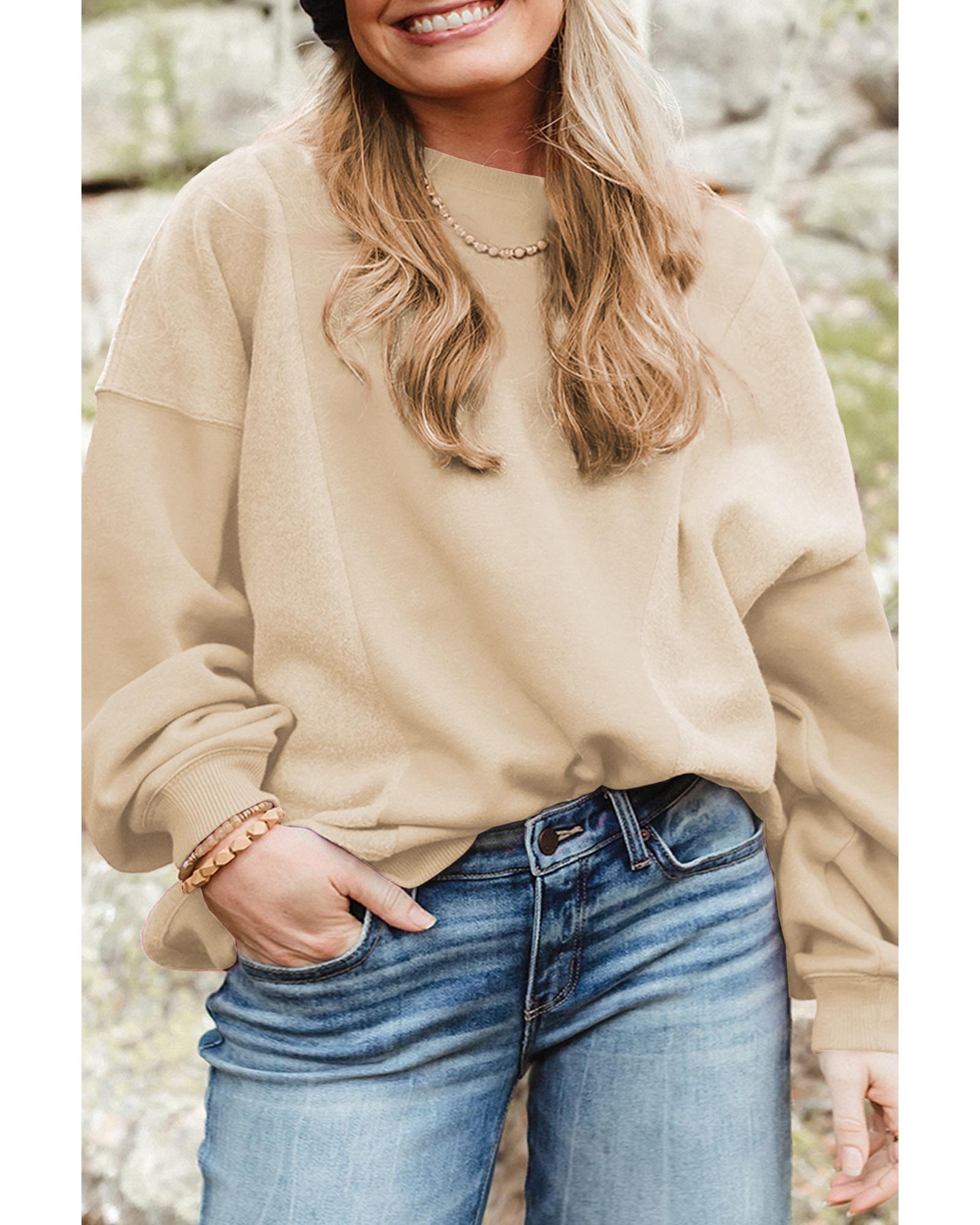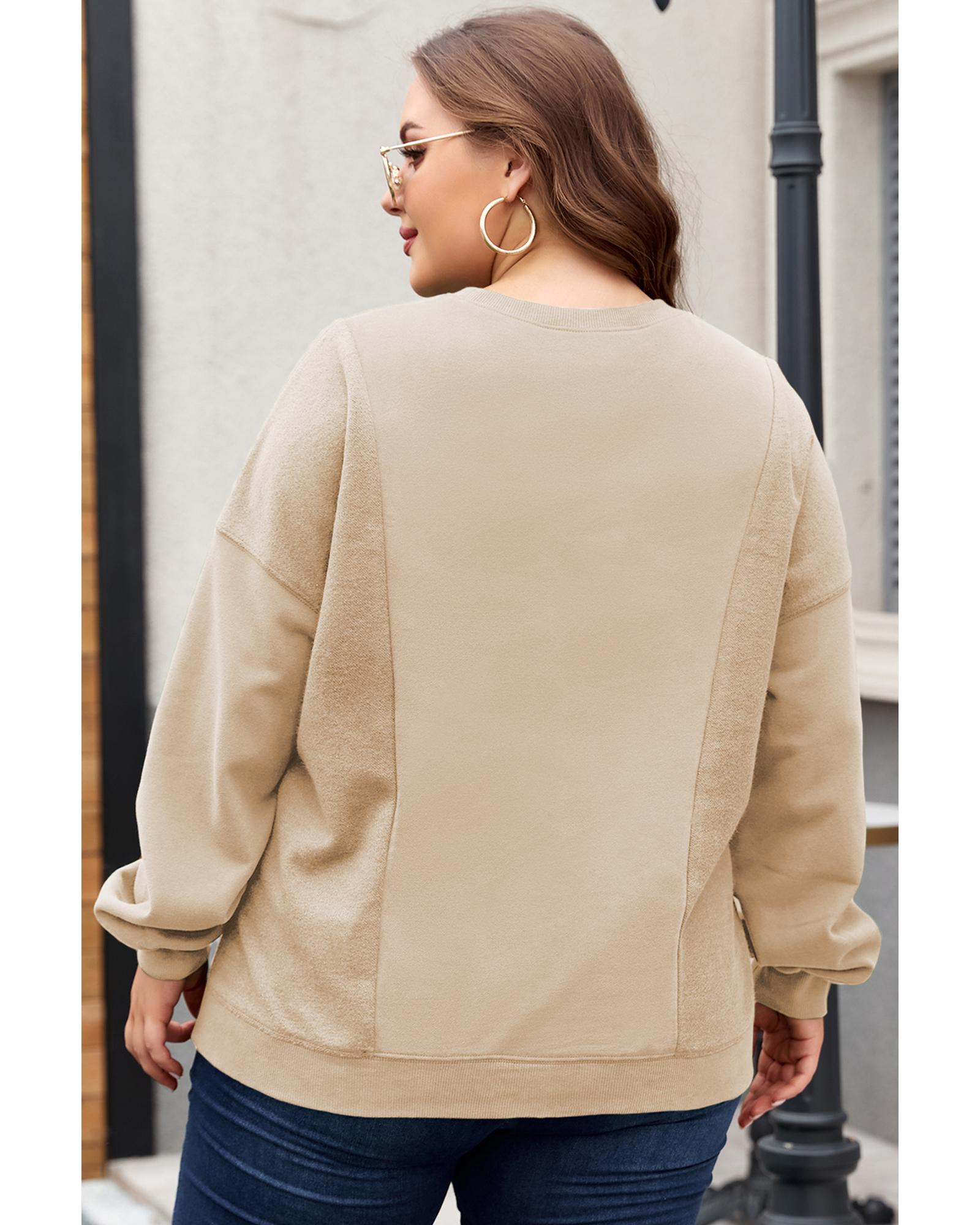 Apricot Loose Patchwork Crewneck Plus Size Sweatshirt – 2X