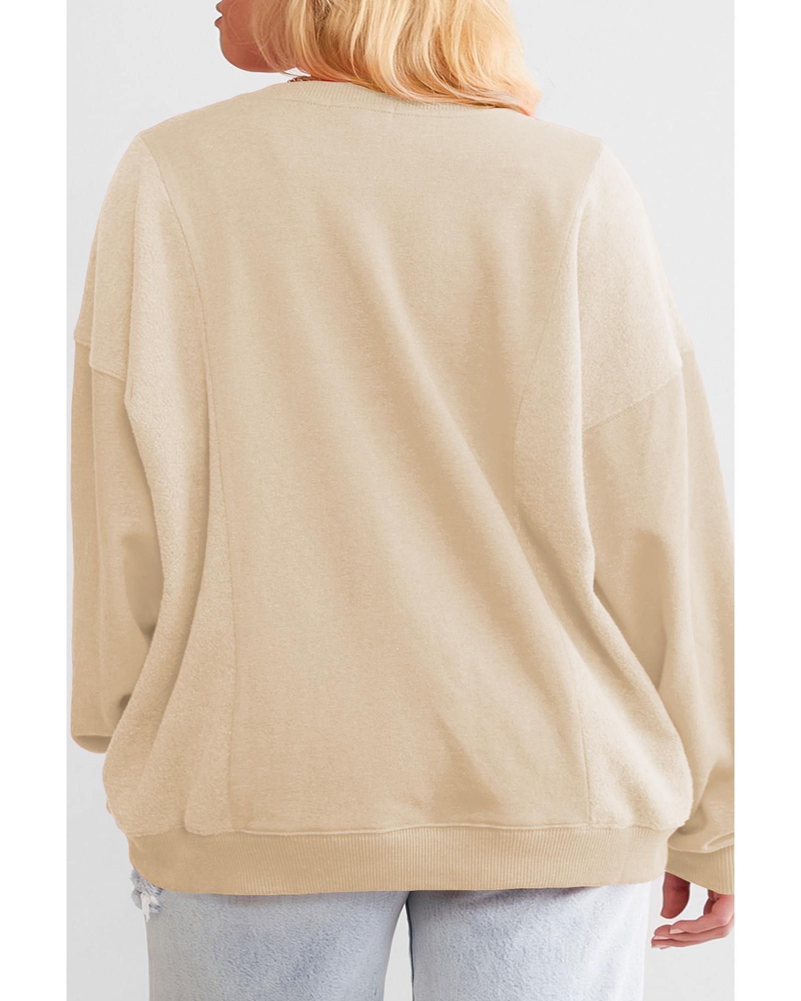Apricot Loose Patchwork Crewneck Plus Size Sweatshirt – 3X