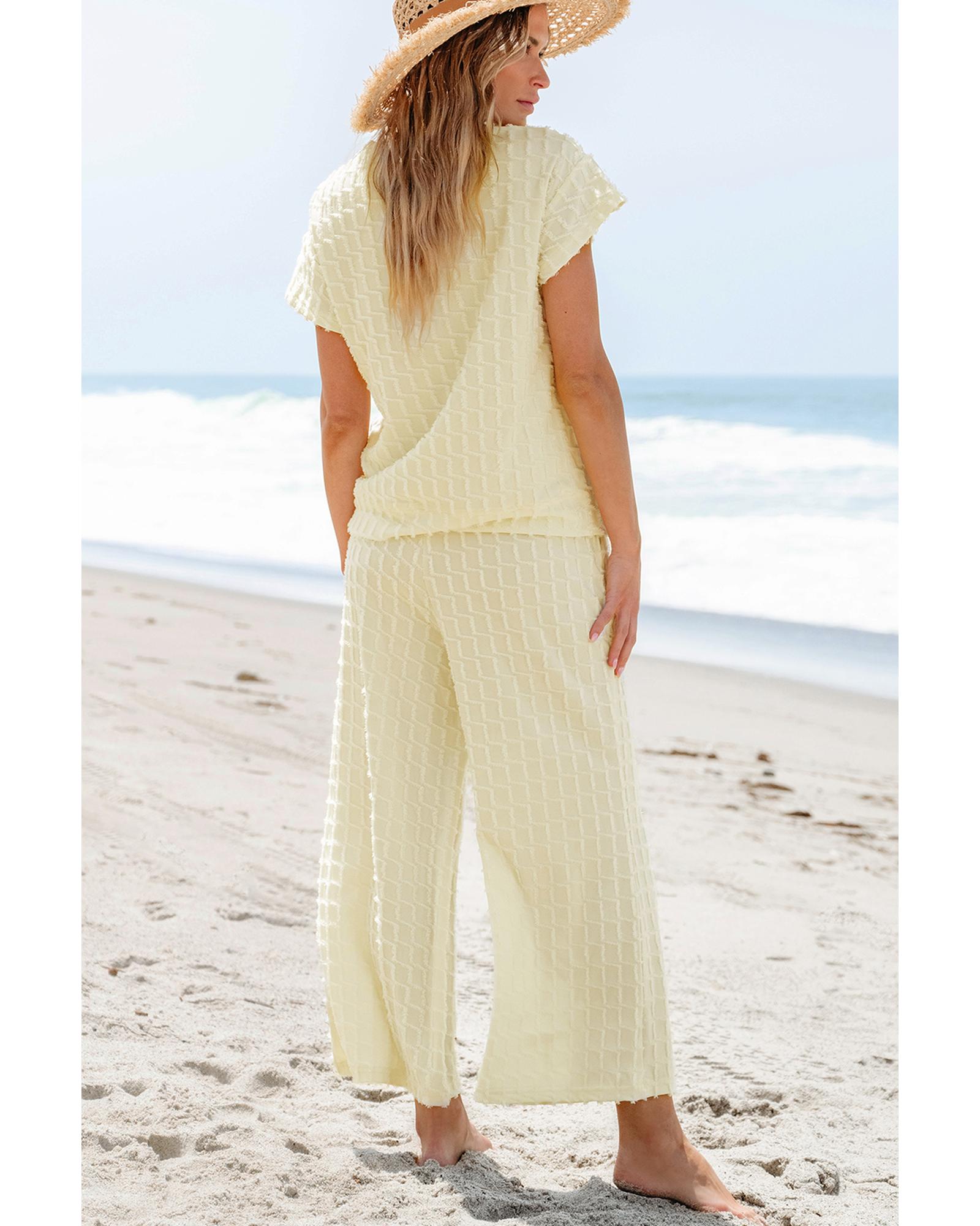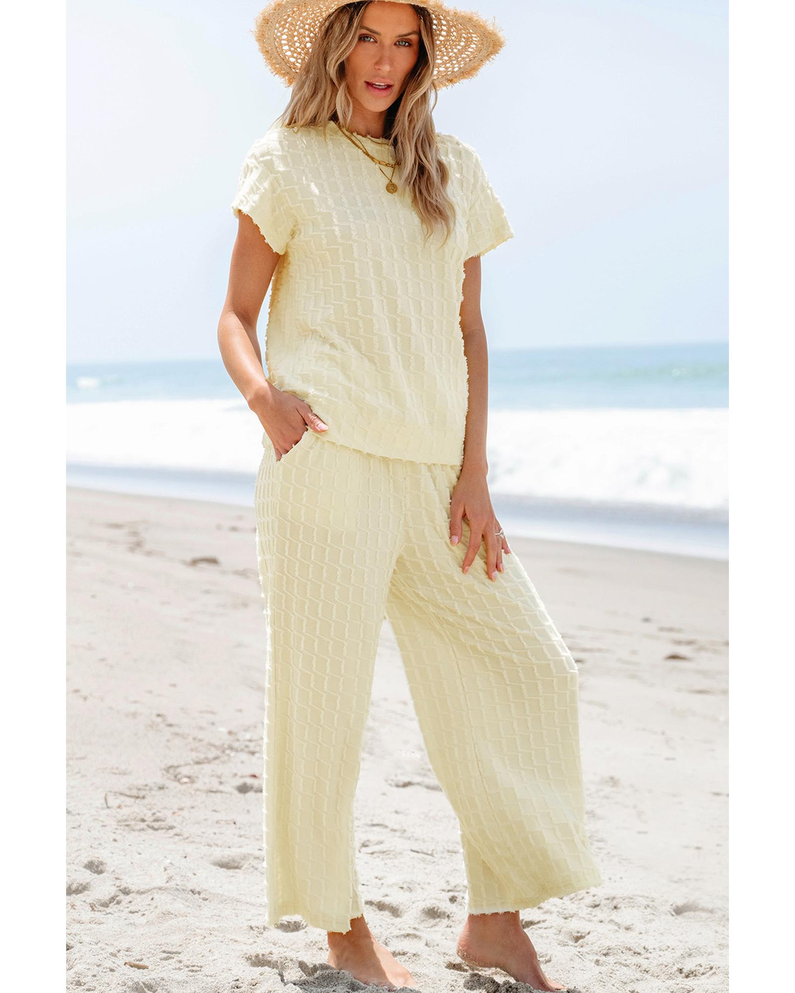 Apricot Metallic Lattice Textured Casual Two Piece Set – L